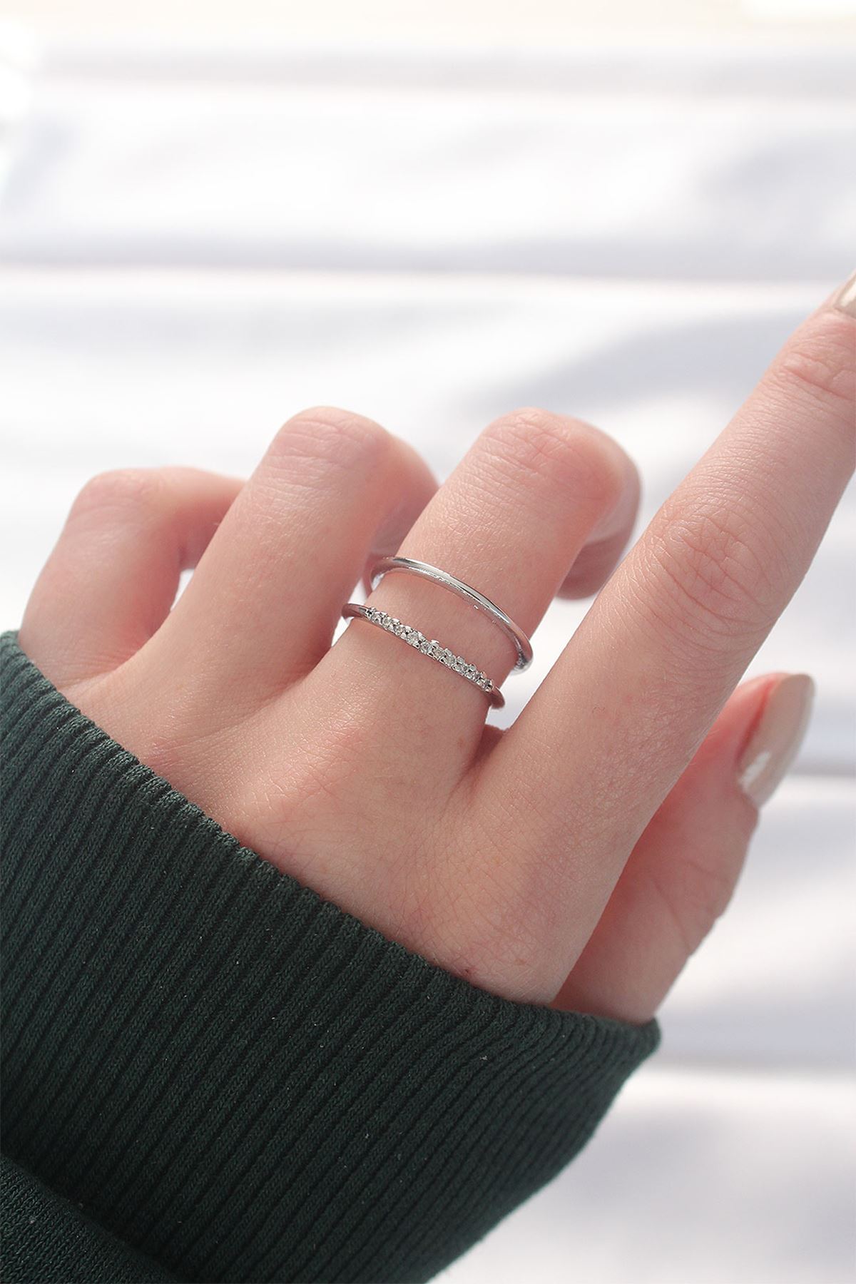 YRTCL 2li Görünümlü Su Yolu Tasarımlı Silver Renk Ayarlanabilir Yüzük