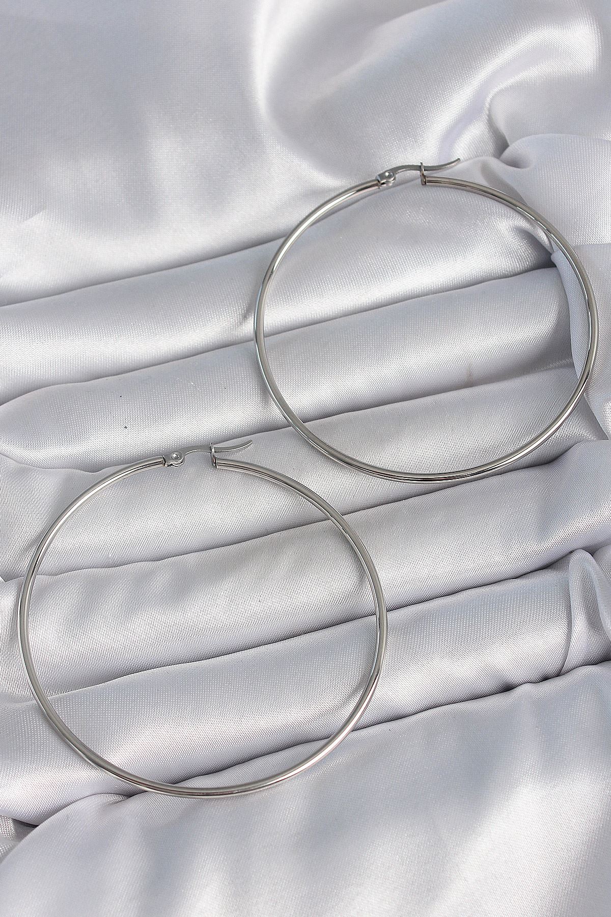 YRTCL 316 Çelik Gümüş Renk 63 mm Halka Model Kadın Küpe