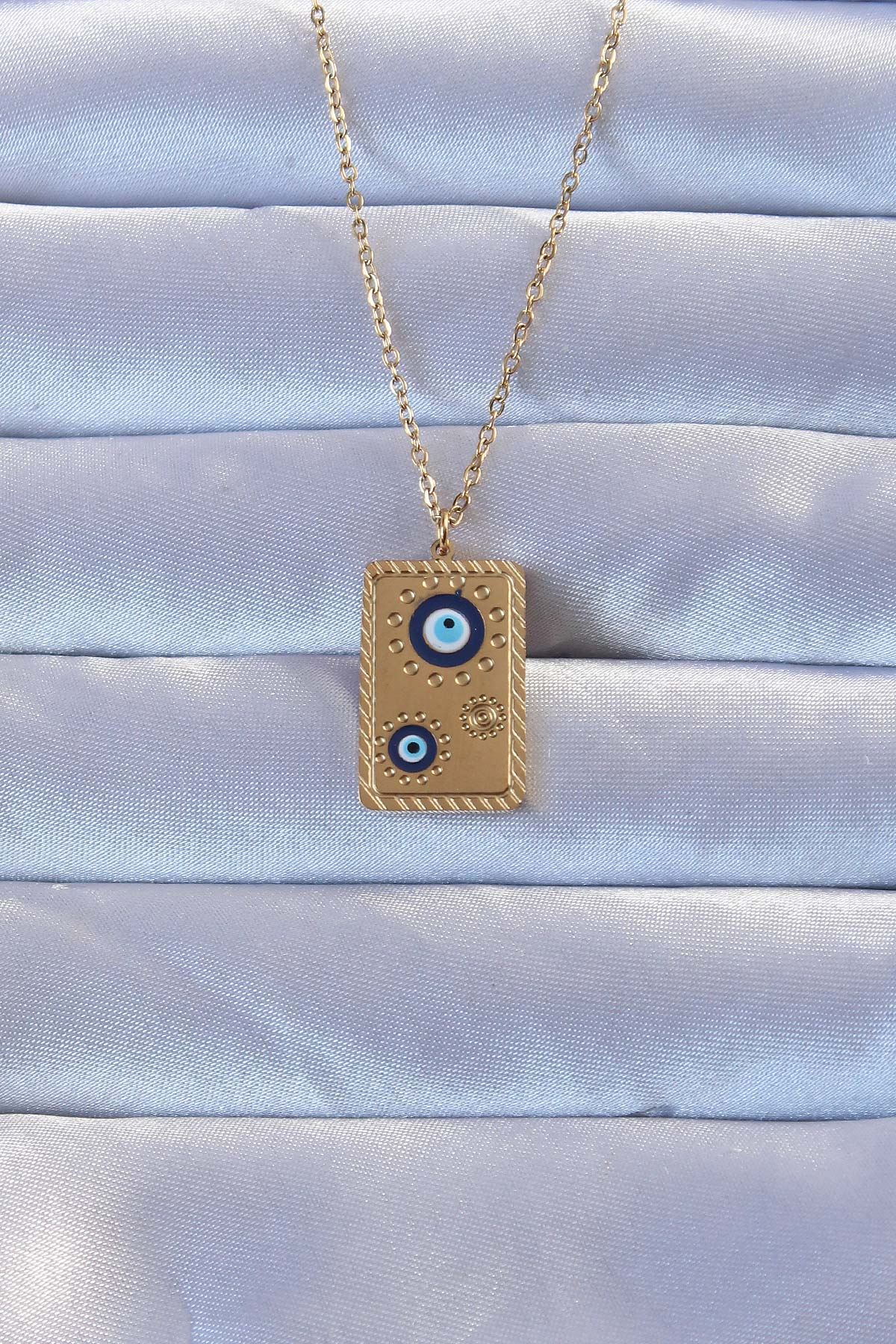 YRTCL 316L Altın Renk İşlemeli Nazarlı Vintage Kolye