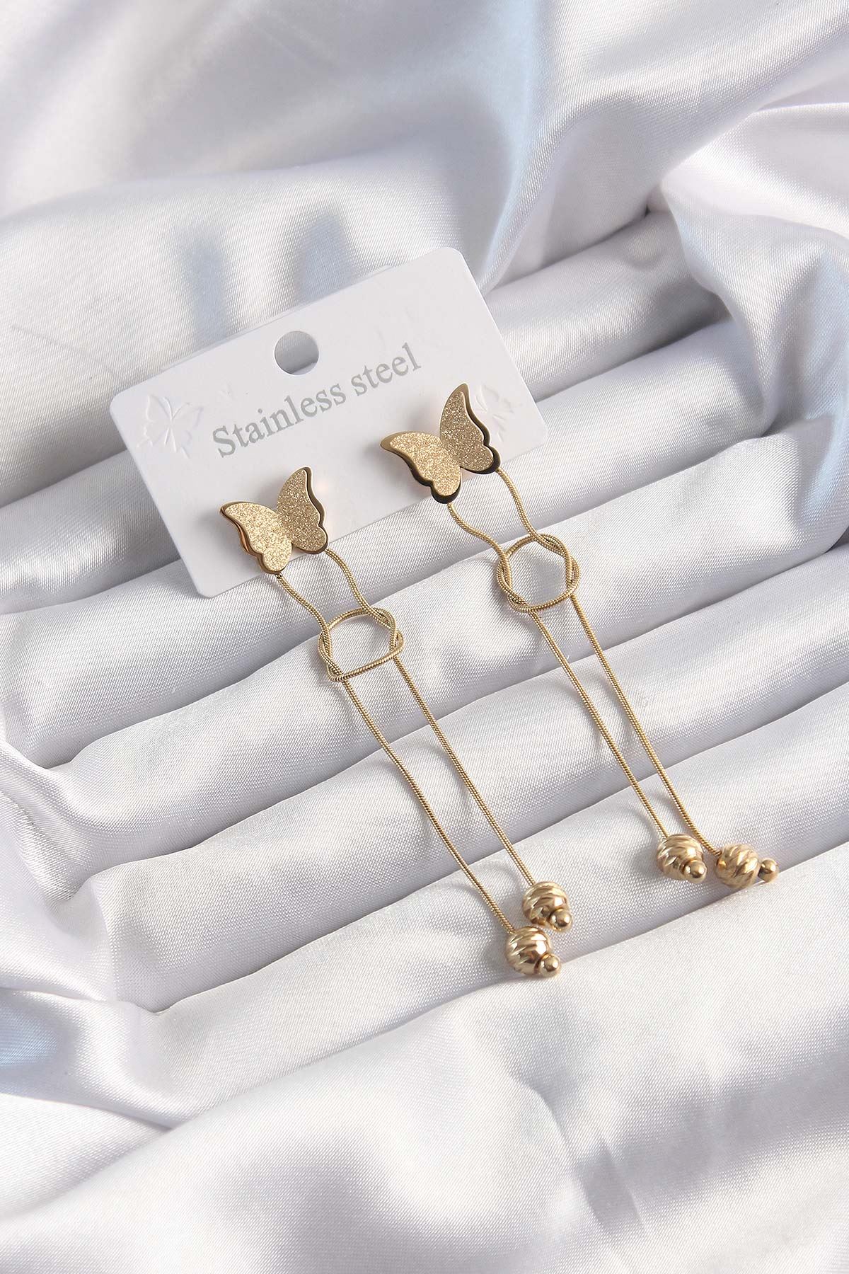 YRTCL 316L Çelik Altın Renk Sallantılı Düğüm Model Kelebek Küpe