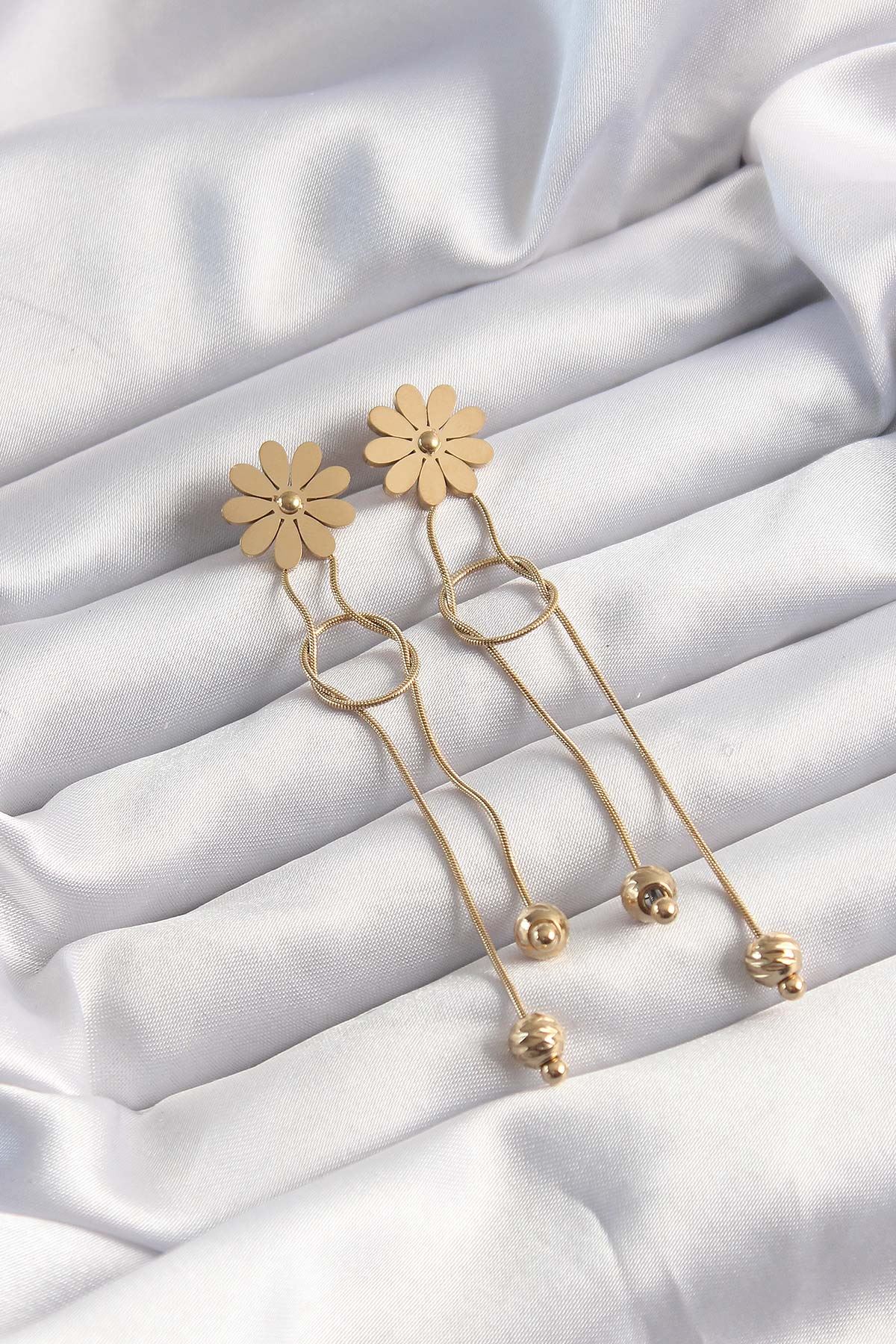 YRTCL 316L Çelik Altın Renk Sallantılı Düğüm Model Papatya Küpe