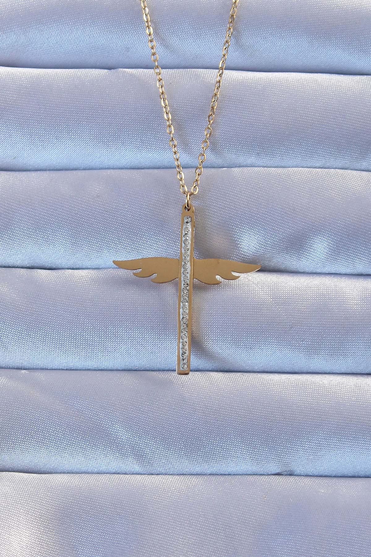 YRTCL 316L Çelik Altın Renk Zirkon Taşlı Mikail Kolye