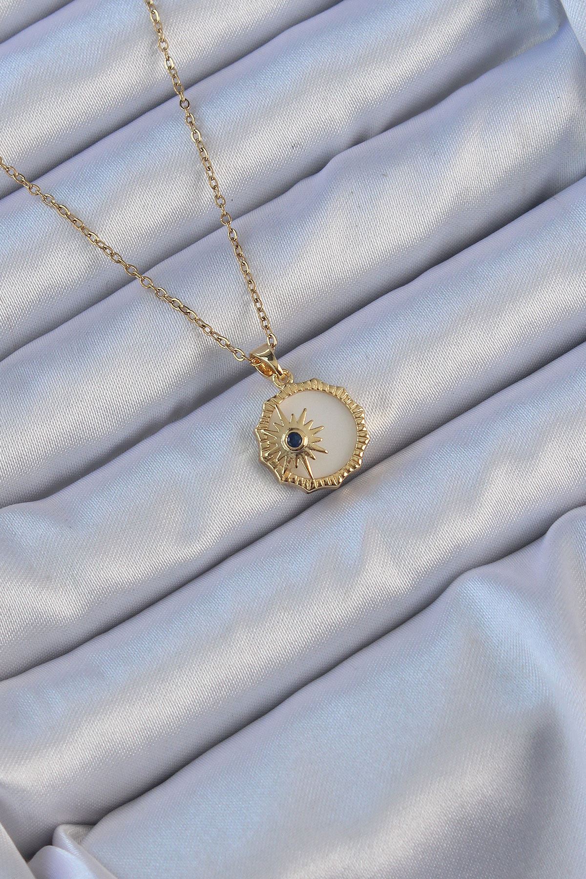 YRTCL 316L Çelik Altın Renk Zirkon Taşlı Mineli Kutup Yıldızı Kolye