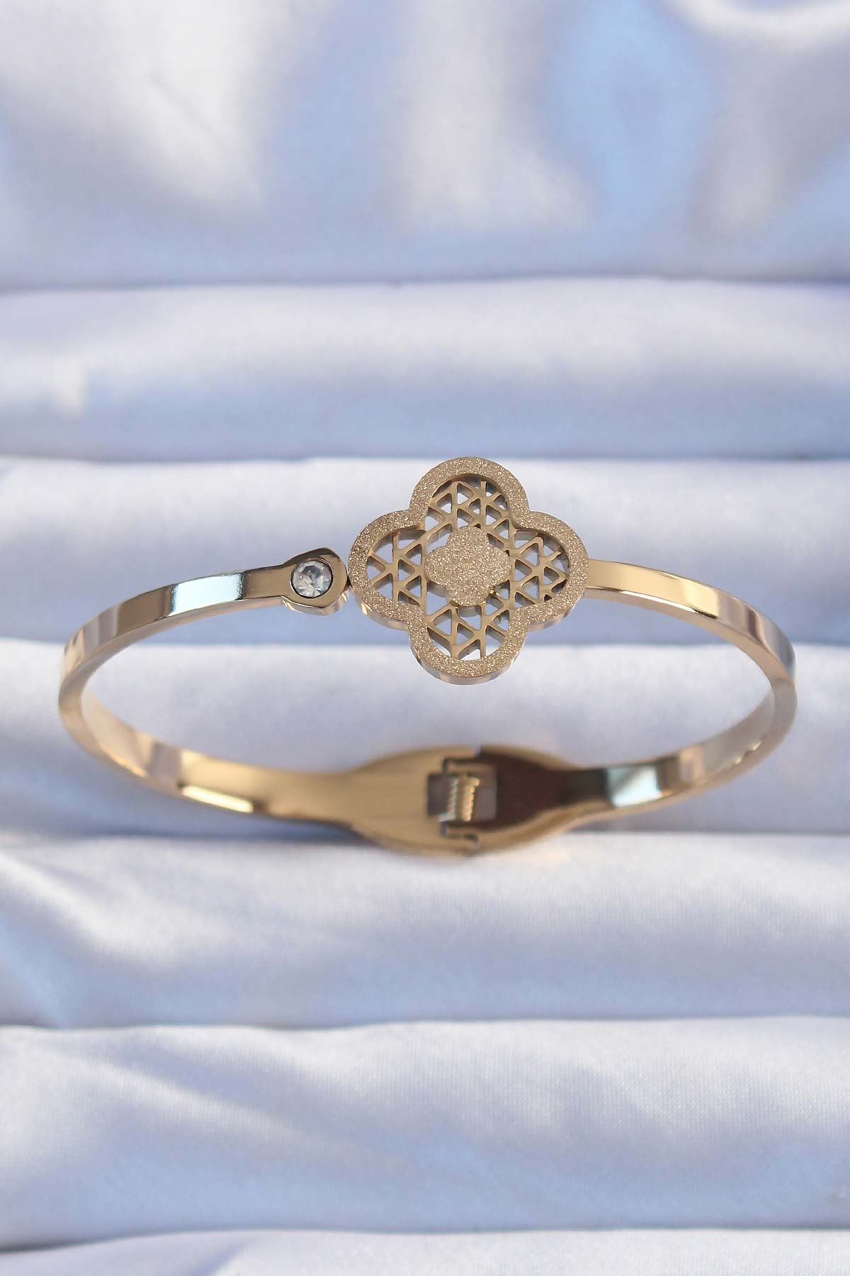YRTCL 316L Çelik Altın Renk Zirkon Taşlı Simli Yonca Kelepçe