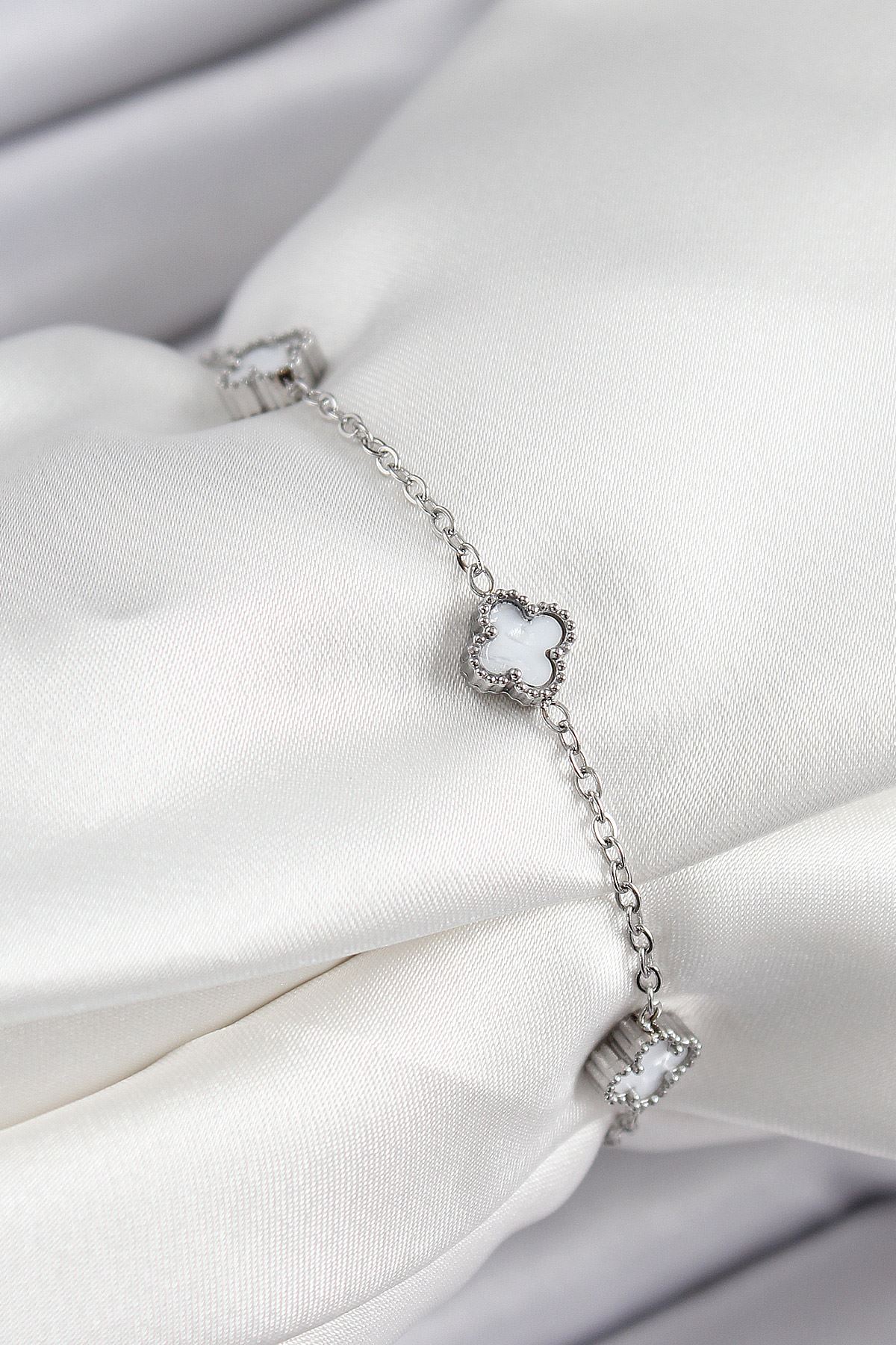 YRTCL 316L Çelik Beyaz Sedef Yonca Model Gümüş Renk Kadın Bileklik