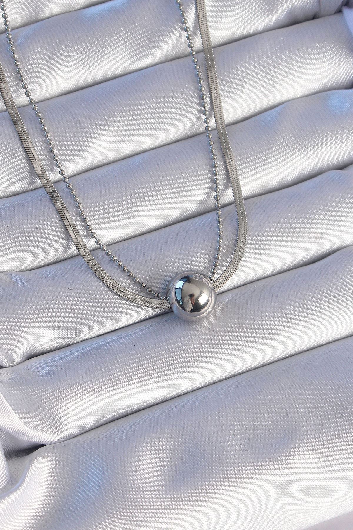 YRTCL 316L Çelik Çift Zincirli Gümüş Renk Topçuk İtalyan Model Kolye