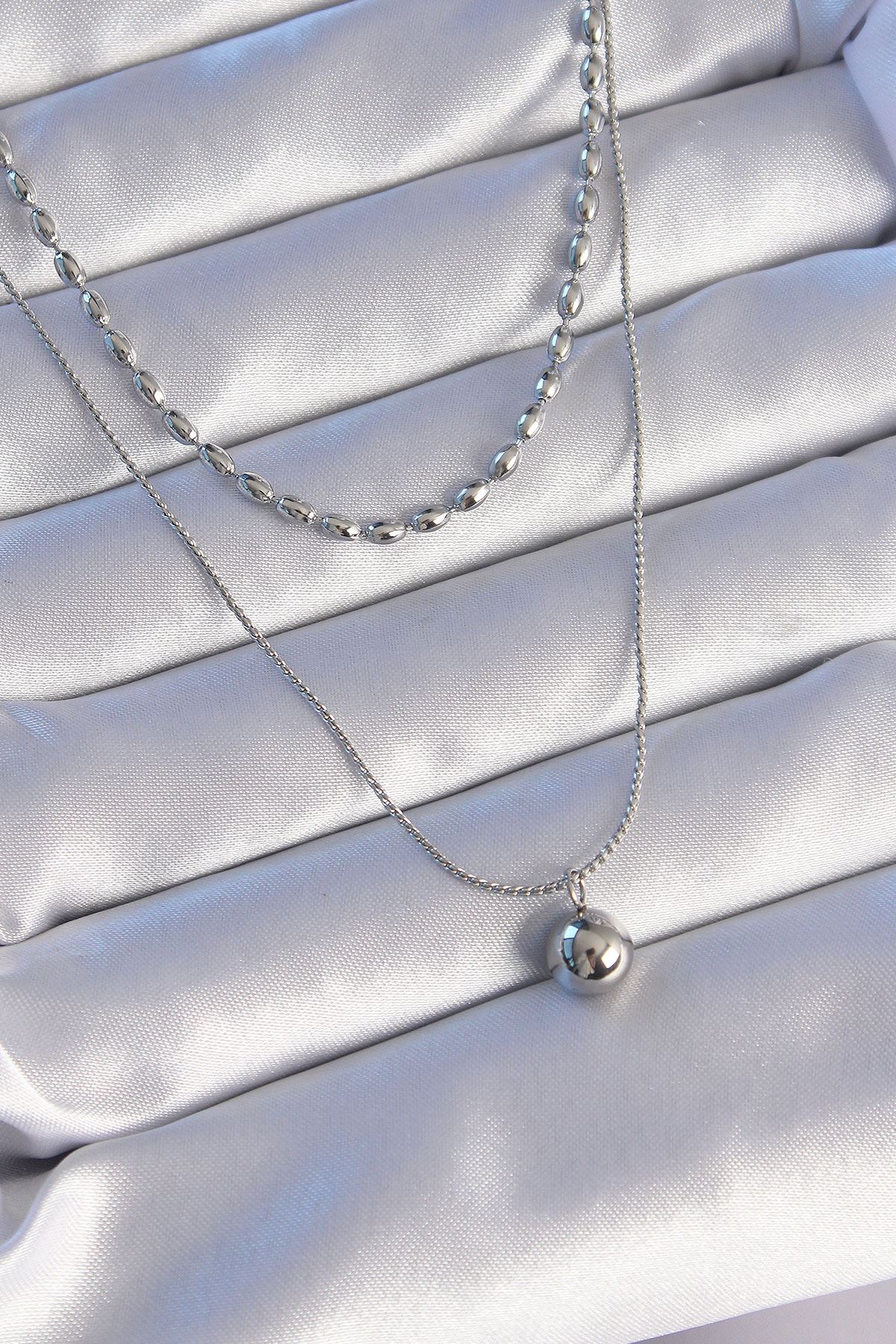 YRTCL 316L Çelik Çift Zincirli Gümüş Renk Topçuk Model Kolye