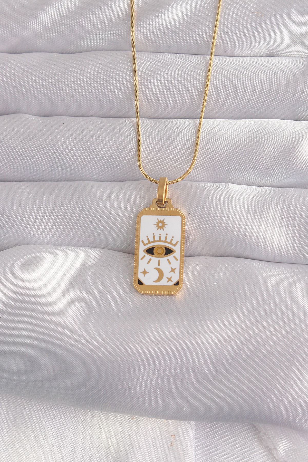 YRTCL 316L Çelik Gold Renk Beyaz Mineli Göz Figür Tarot Kolye
