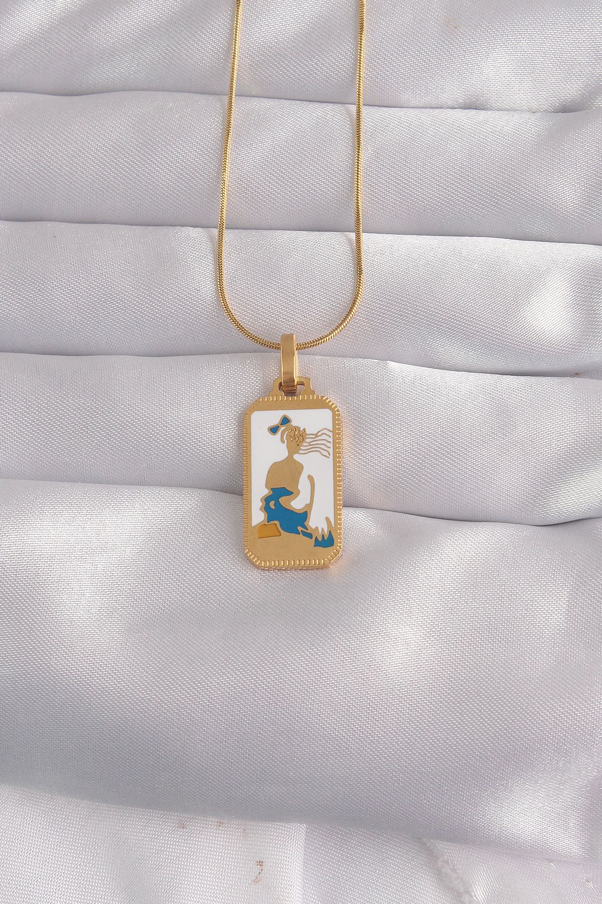 YRTCL 316L Çelik Gold Renk Beyaz Mineli Kız Figür Tarot Kolye
