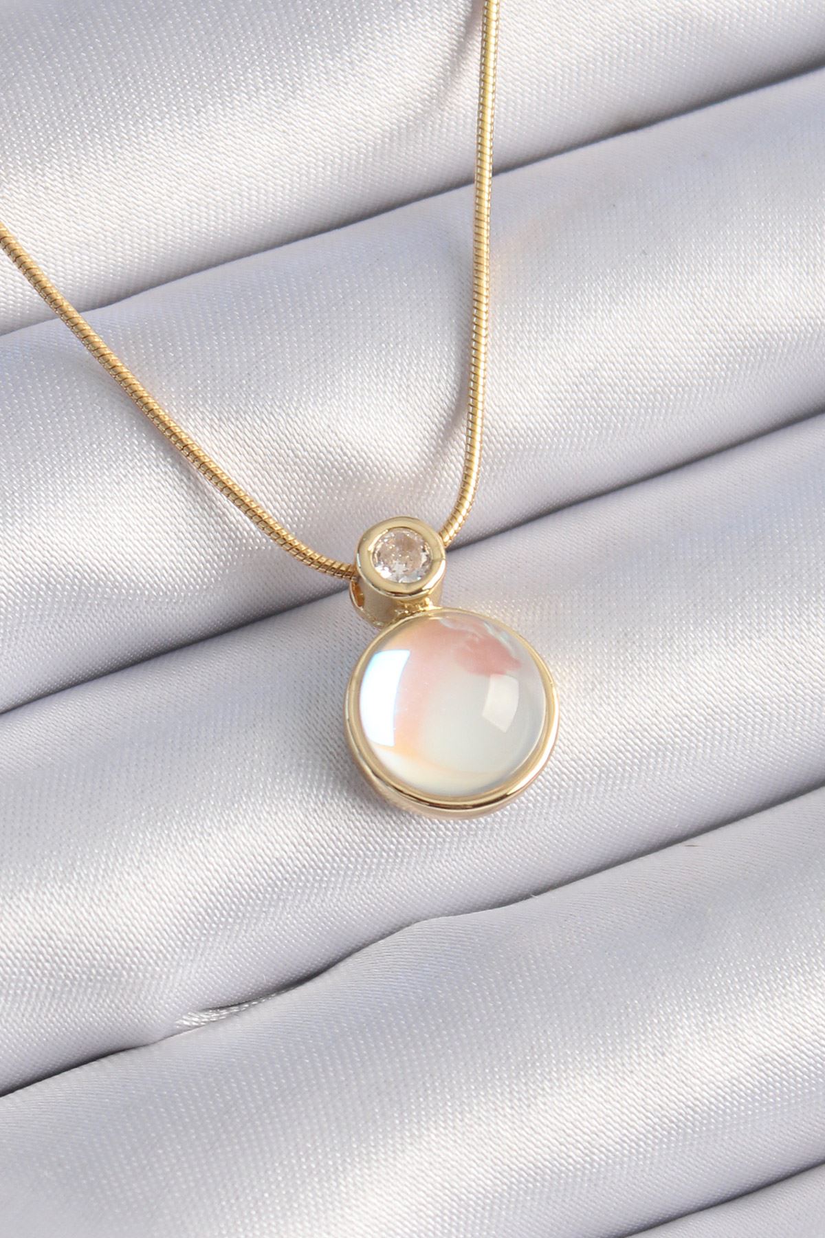 YRTCL 316L Çelik Gold Renk Beyaz Sedefli Vintage Kadın Kolye