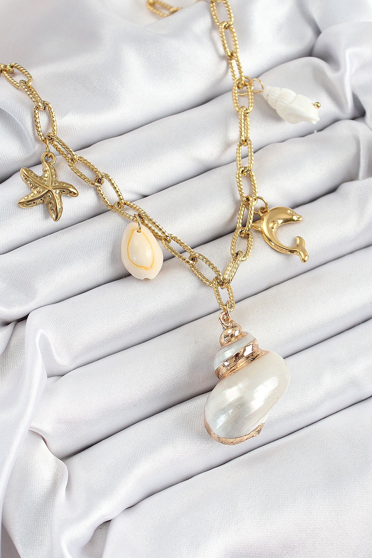 YRTCL 316L Çelik Gold Renk Deniz Kabuğu ve Yıldızı Konseptli Kadın Kolye