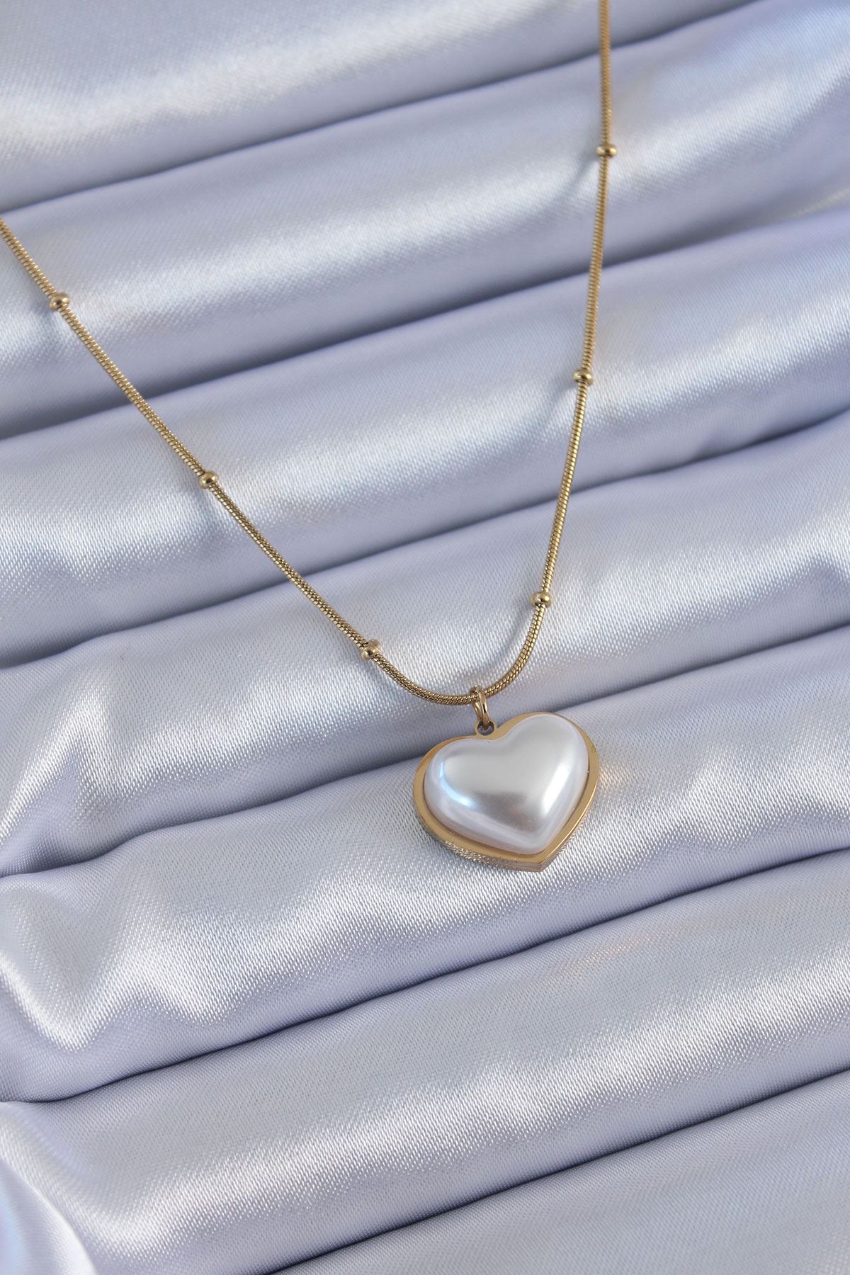 YRTCL 316L Çelik Gold Renk İncili Kalp Model Minimal Top Detay Kadın Kolye