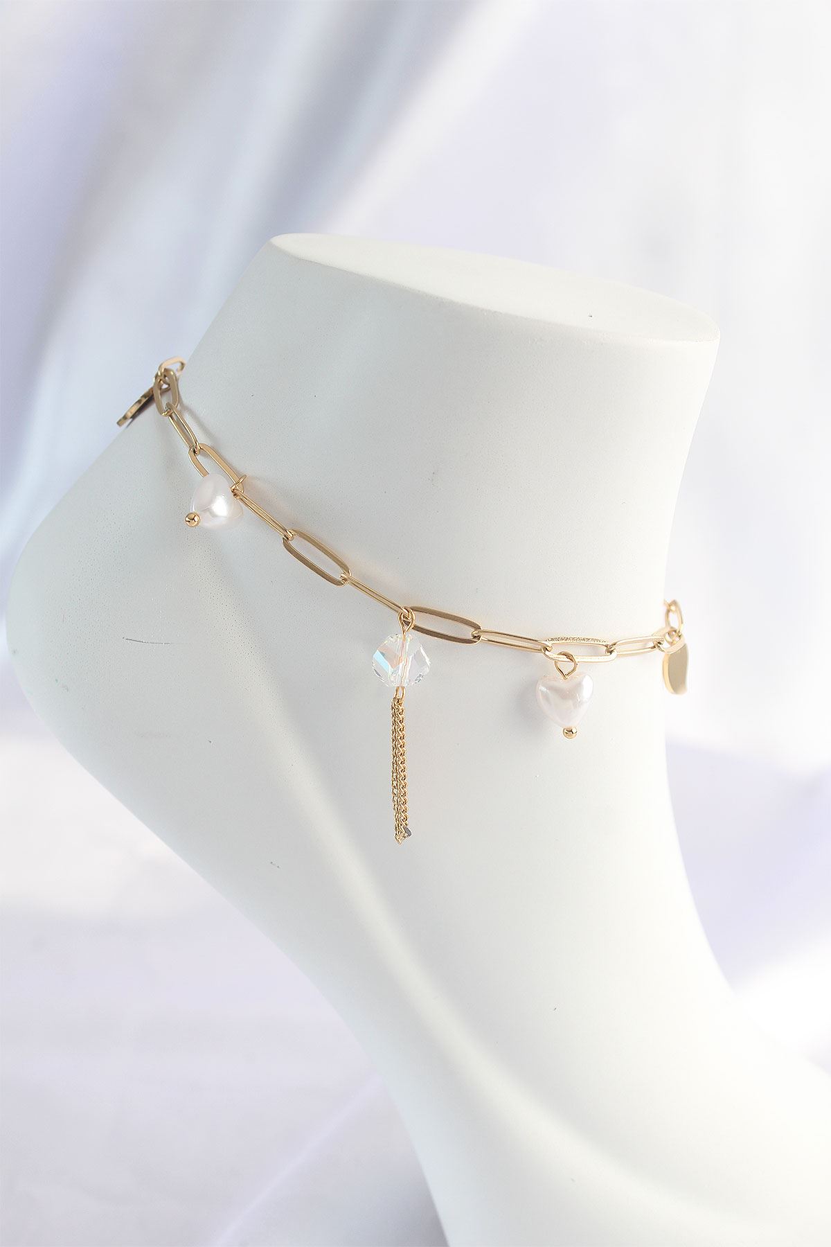 YRTCL 316L Çelik Gold Renk Sallantı Mineli Kalp Figür Topçuk Detay Kadın Halhal
