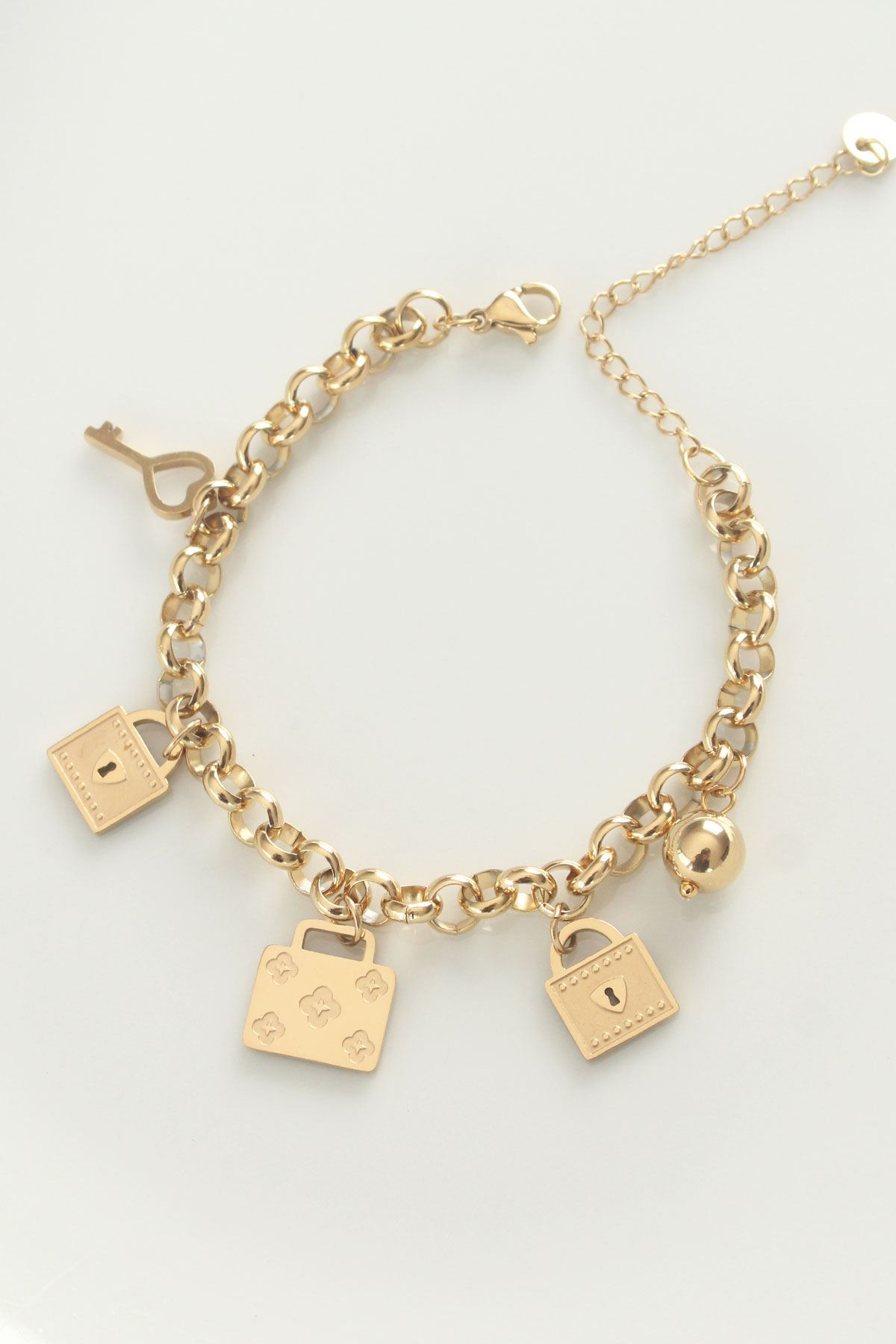 YRTCL 316L Çelik Gold Renk Karışık Aksesuarlı Oval Zincir Bileklik