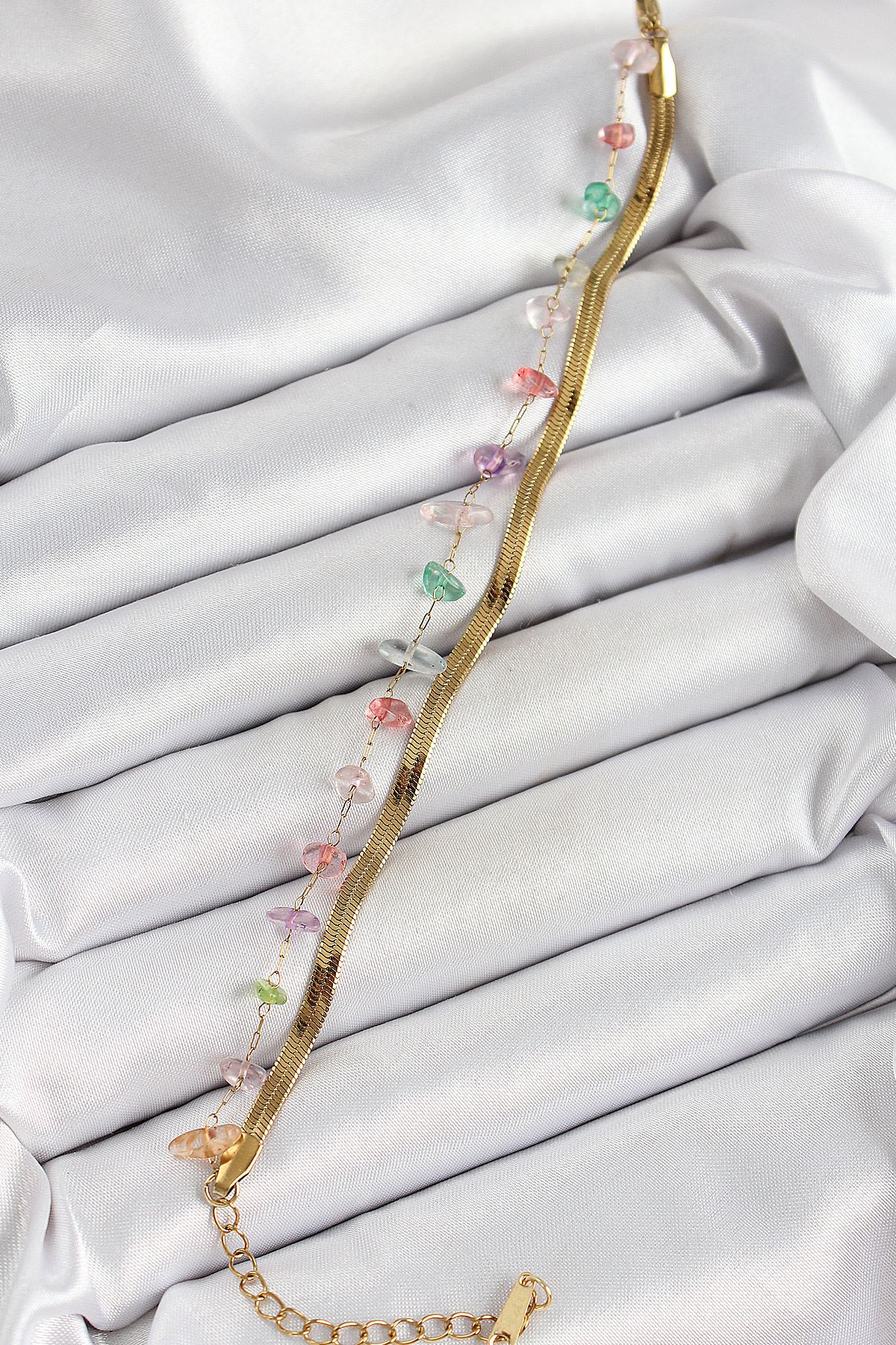 YRTCL 316L Çelik Gold Renk Kristal Karışık Renkli Taşlı Kadın Bileklik