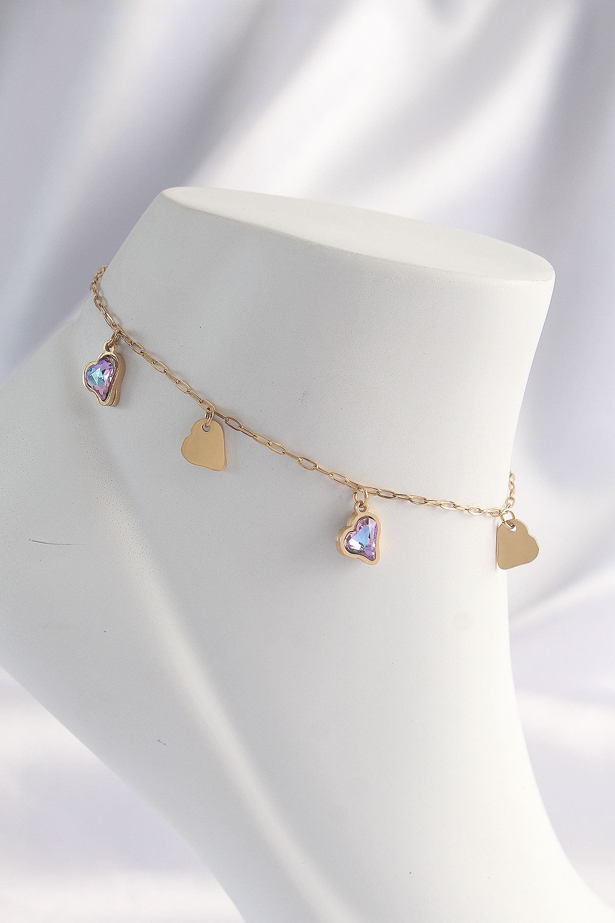 YRTCL 316L Çelik Gold Renk Minimal Renkli Zirkon Taşlı Kalp Halhal