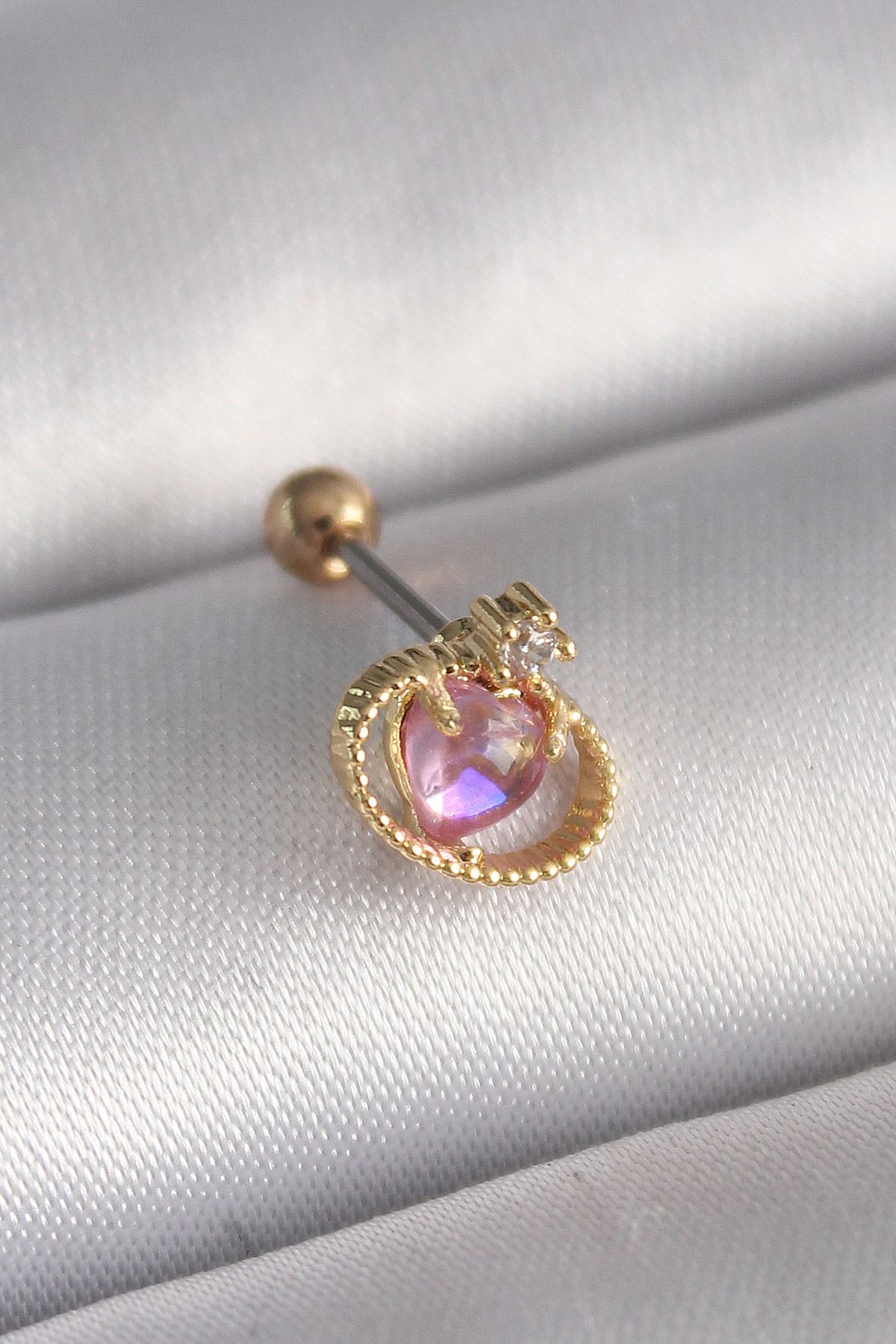 YRTCL 316L Çelik Gold Renk Pembe Mineli Kalp Zirkon Taş Detay Tragus Piercing