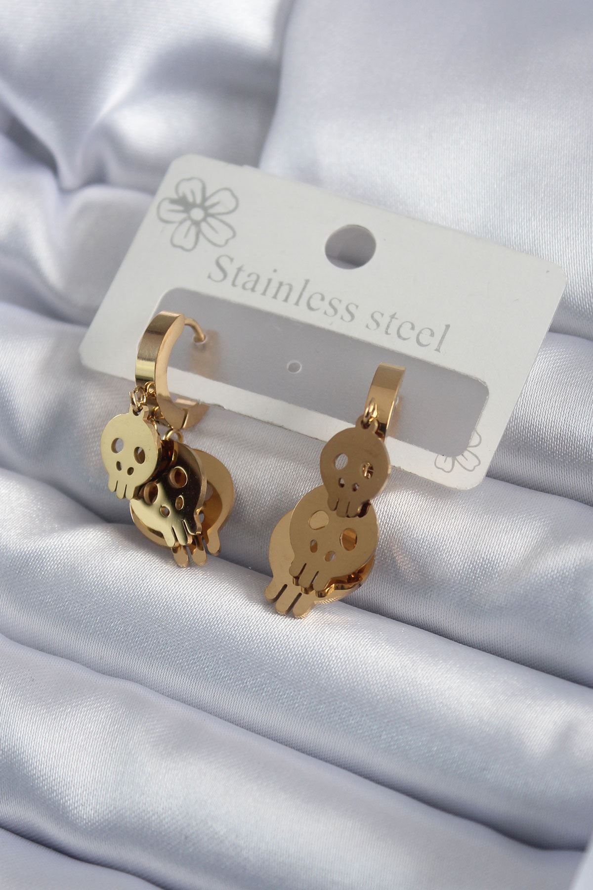 YRTCL 316L Çelik Gold Renk Sallantı Kuru Kafa Model Kadın Küpe