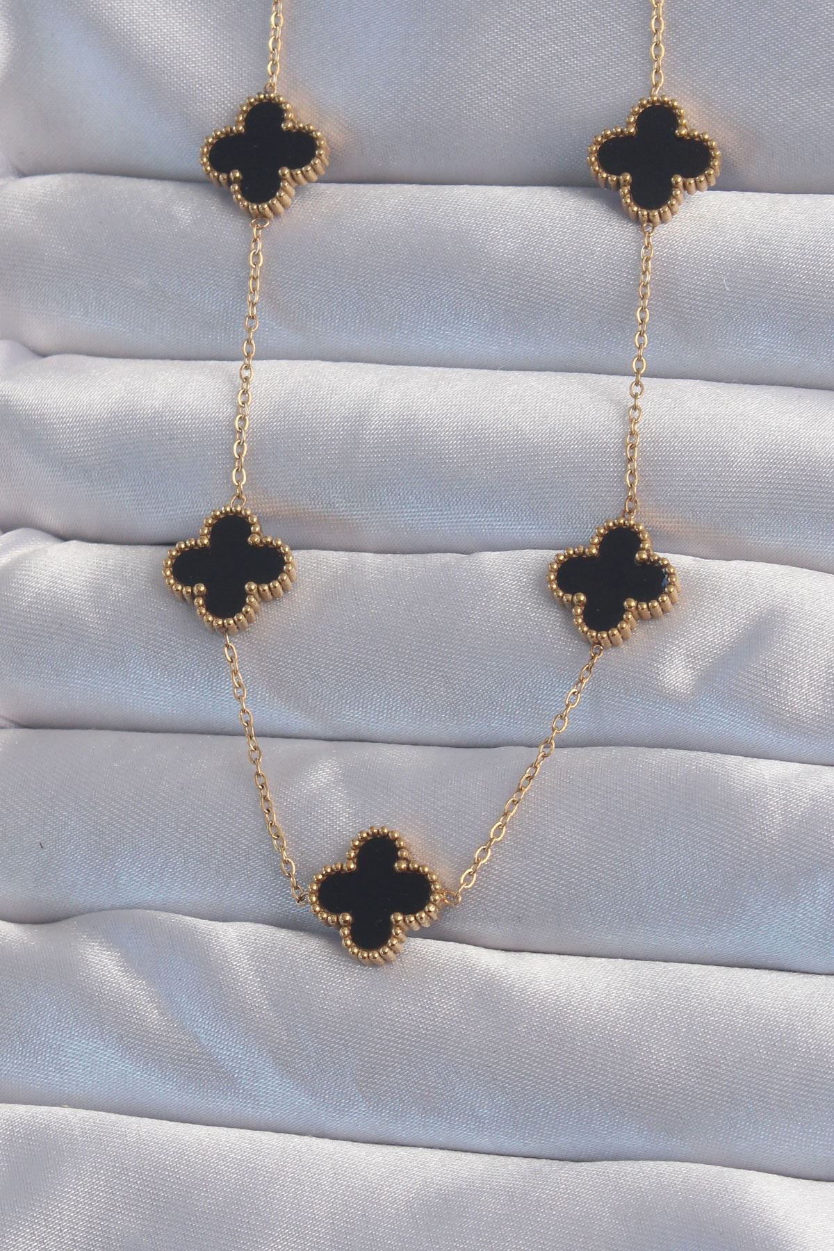 YRTCL 316L Çelik Gold Renk Siyah Mineli Yonca Kolye