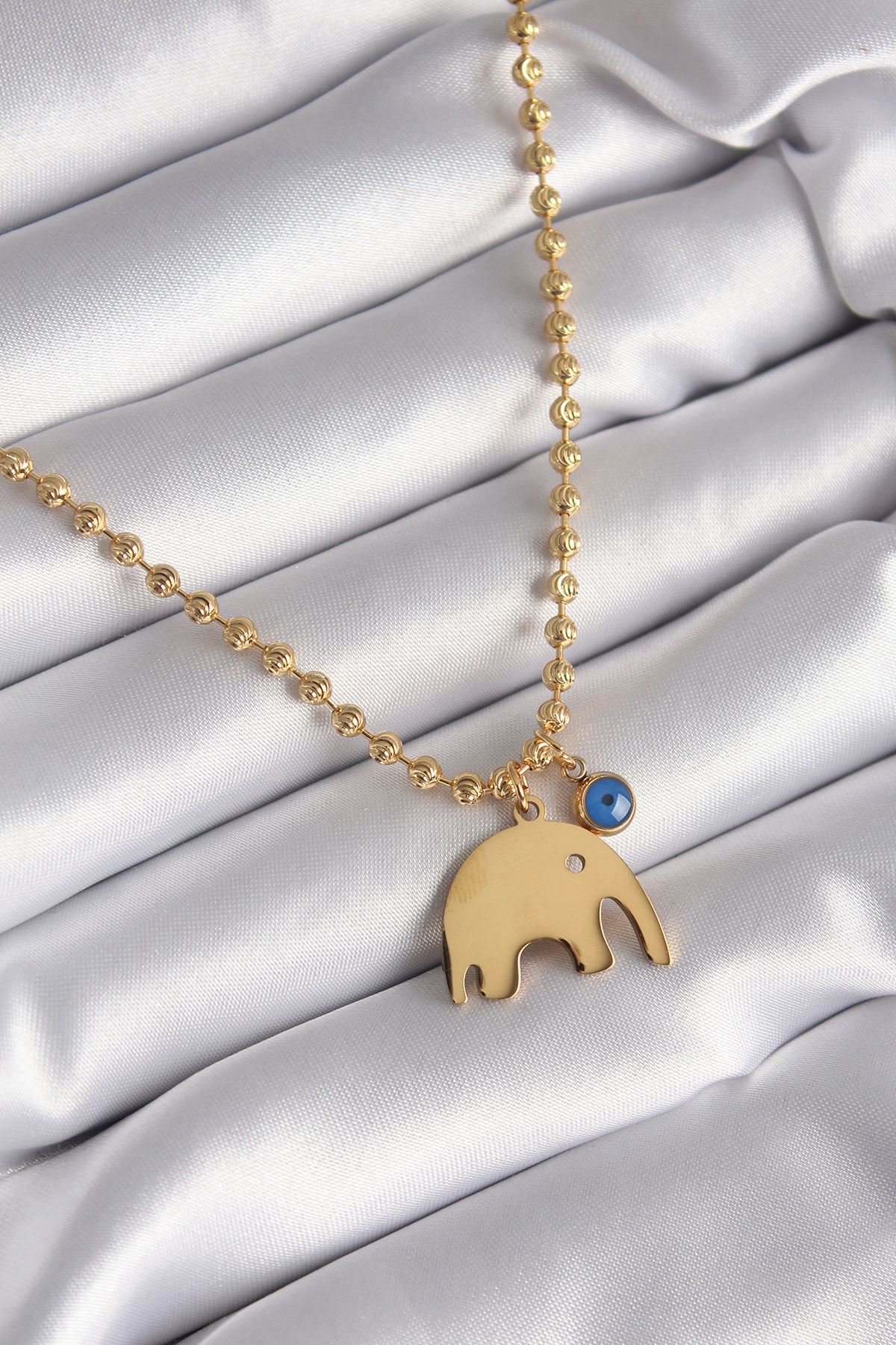 YRTCL 316L Çelik Gold Renk Top Zincir Model Fil Figür Nazar Boncuk Detay Kadın Kolye