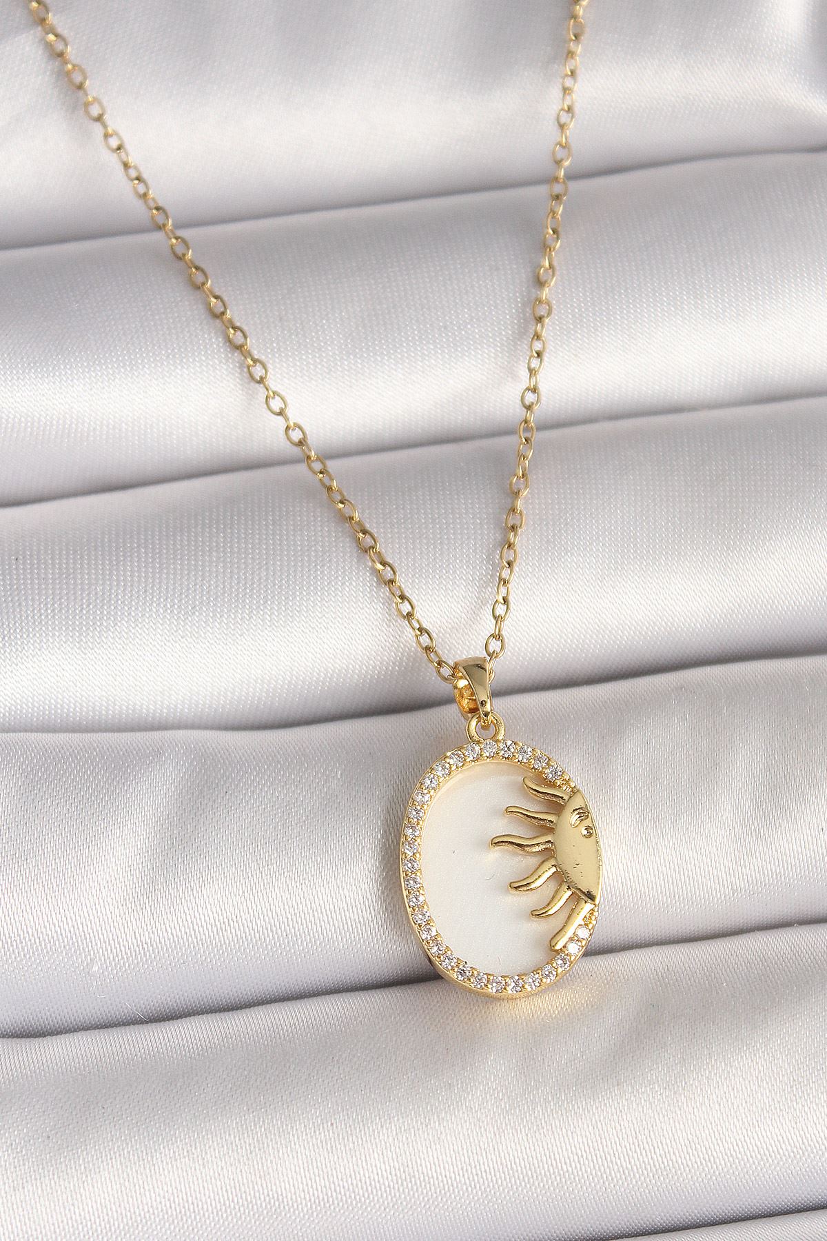 YRTCL 316L Çelik Gold Renk Zincir Beyaz Mineli Gün Batımı Model Zirkon Taş Detay Kadın Kolye