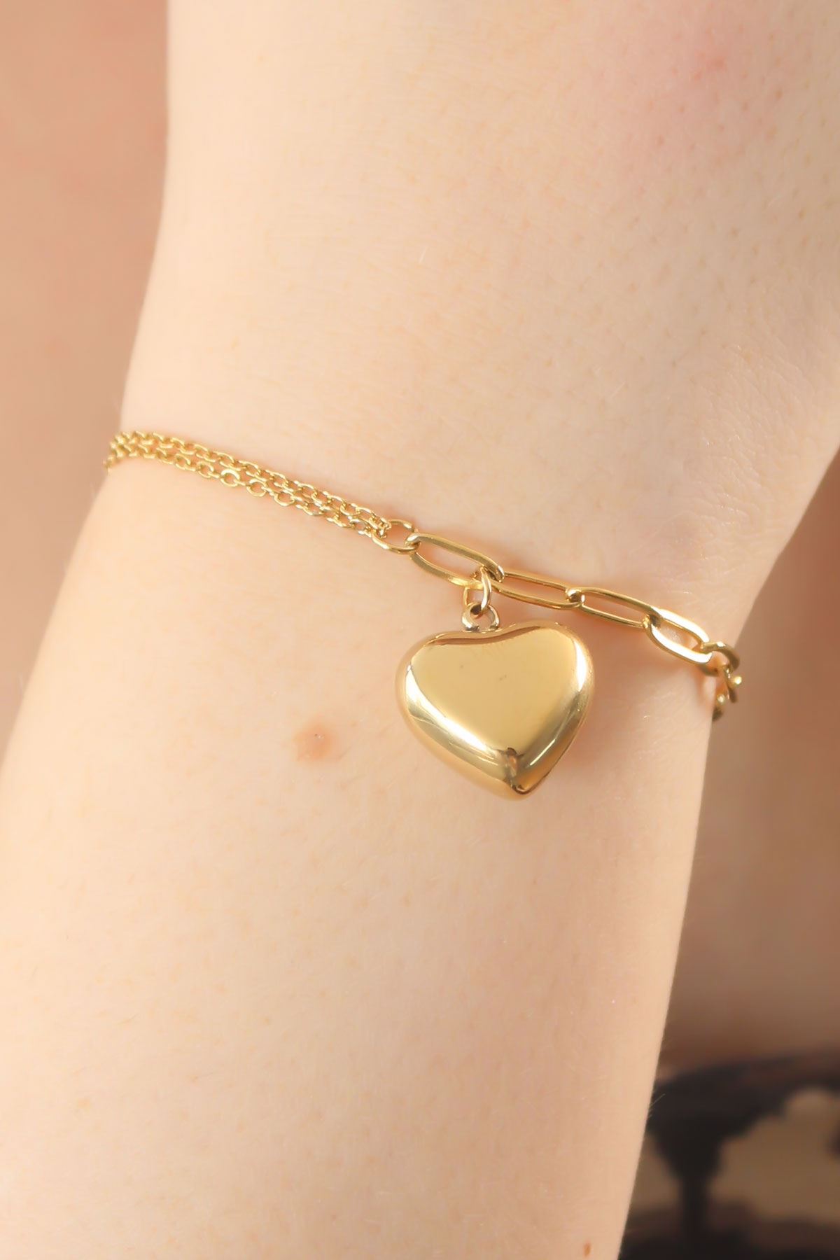 YRTCL 316L Çelik Gold Renk Zincir Model Kalp Figür Kadın Bileklik