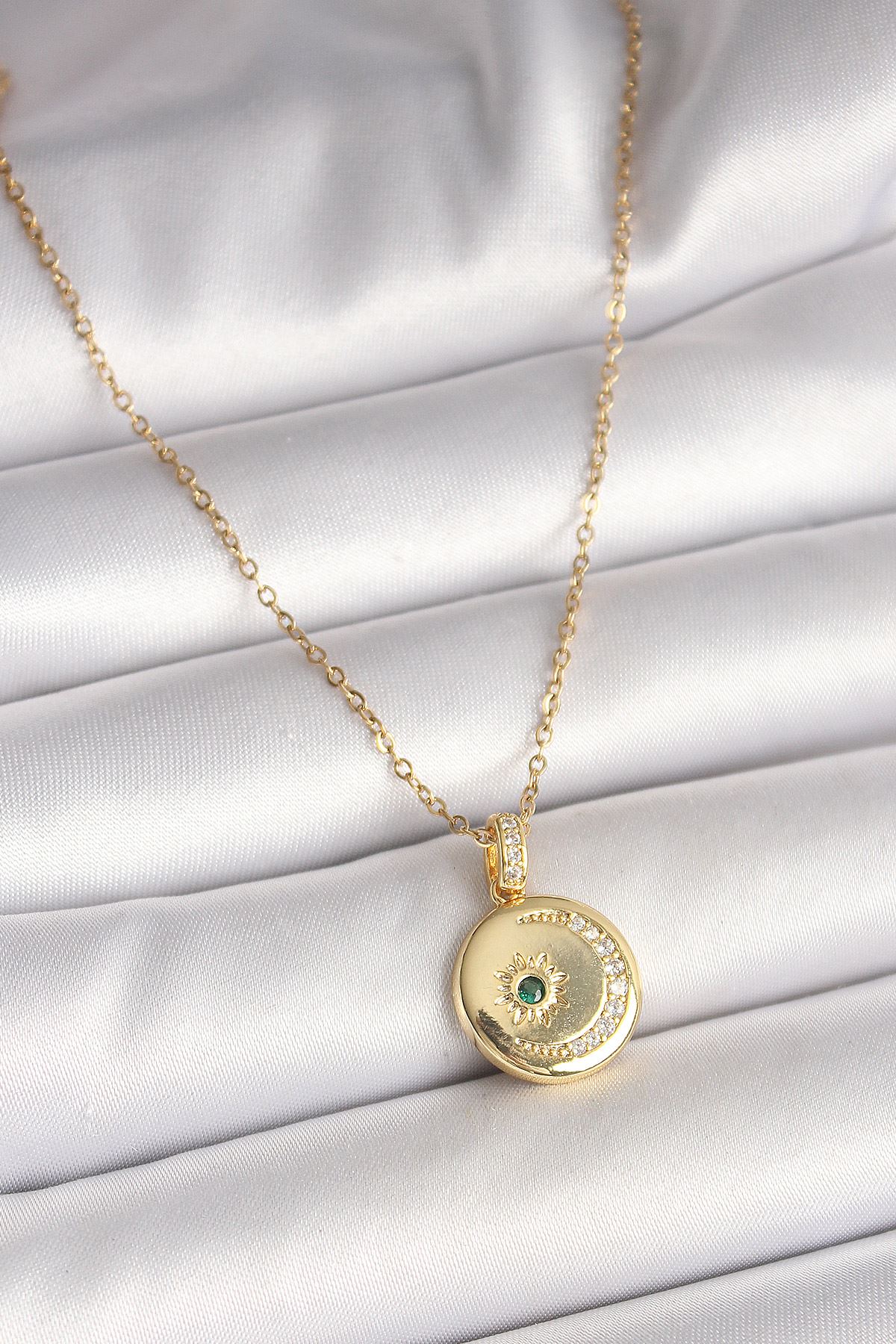 YRTCL 316L Çelik Gold Renk Zincir Zirkon Taş İşlemeli Hilal Yıldız İşlemeli Madalyon Model Kadın Kolye