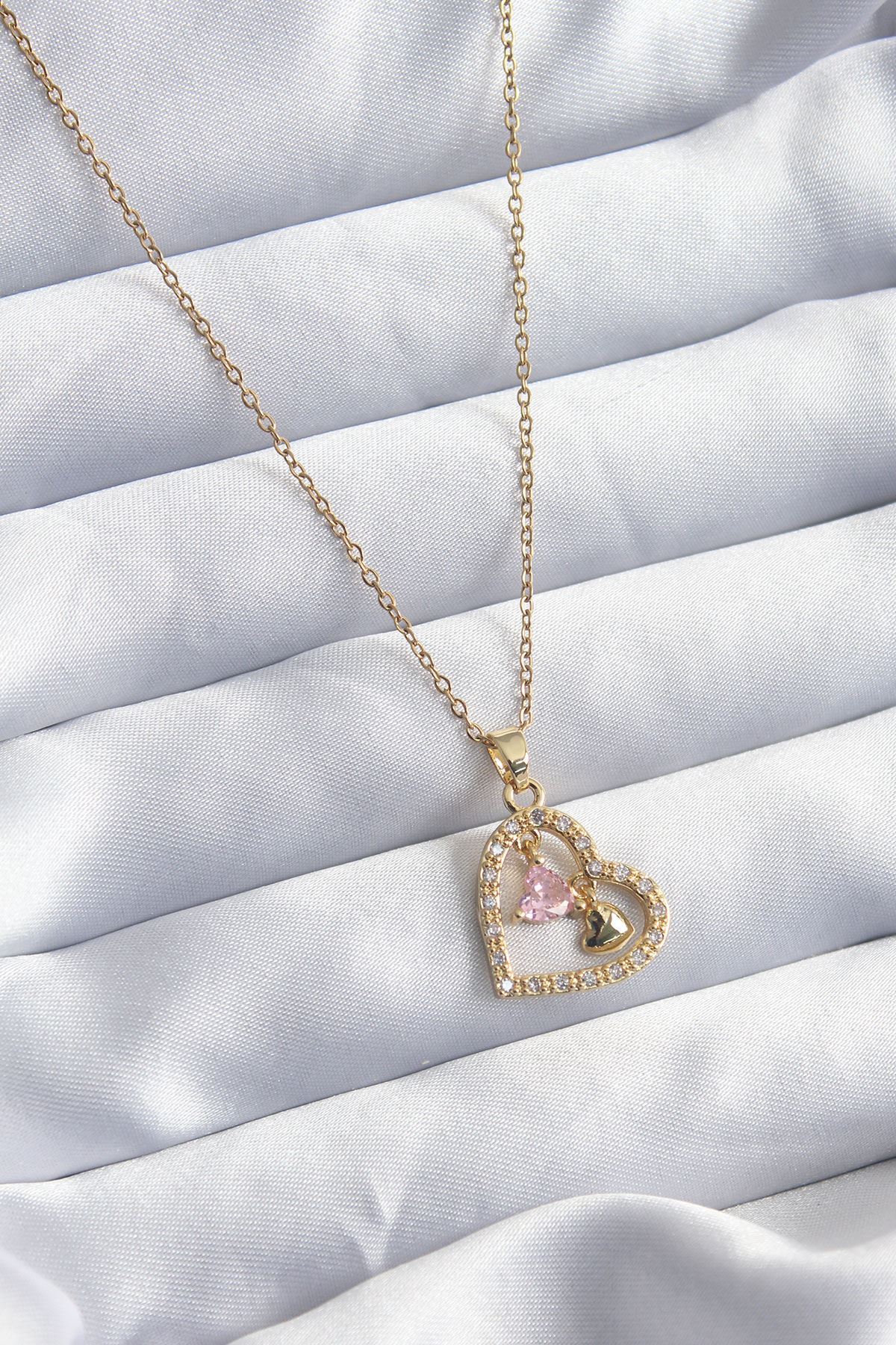 YRTCL 316L Çelik Gold Renk Zincir Zirkon Taşlı Kalp Model Kadın Kolye