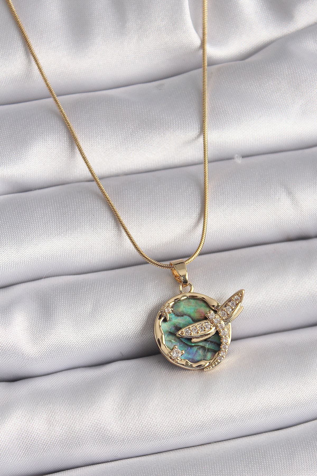 YRTCL 316L Çelik Gold Renk Zincir Zirkon Taşlı Yusufçuk Model Kadın Kolye