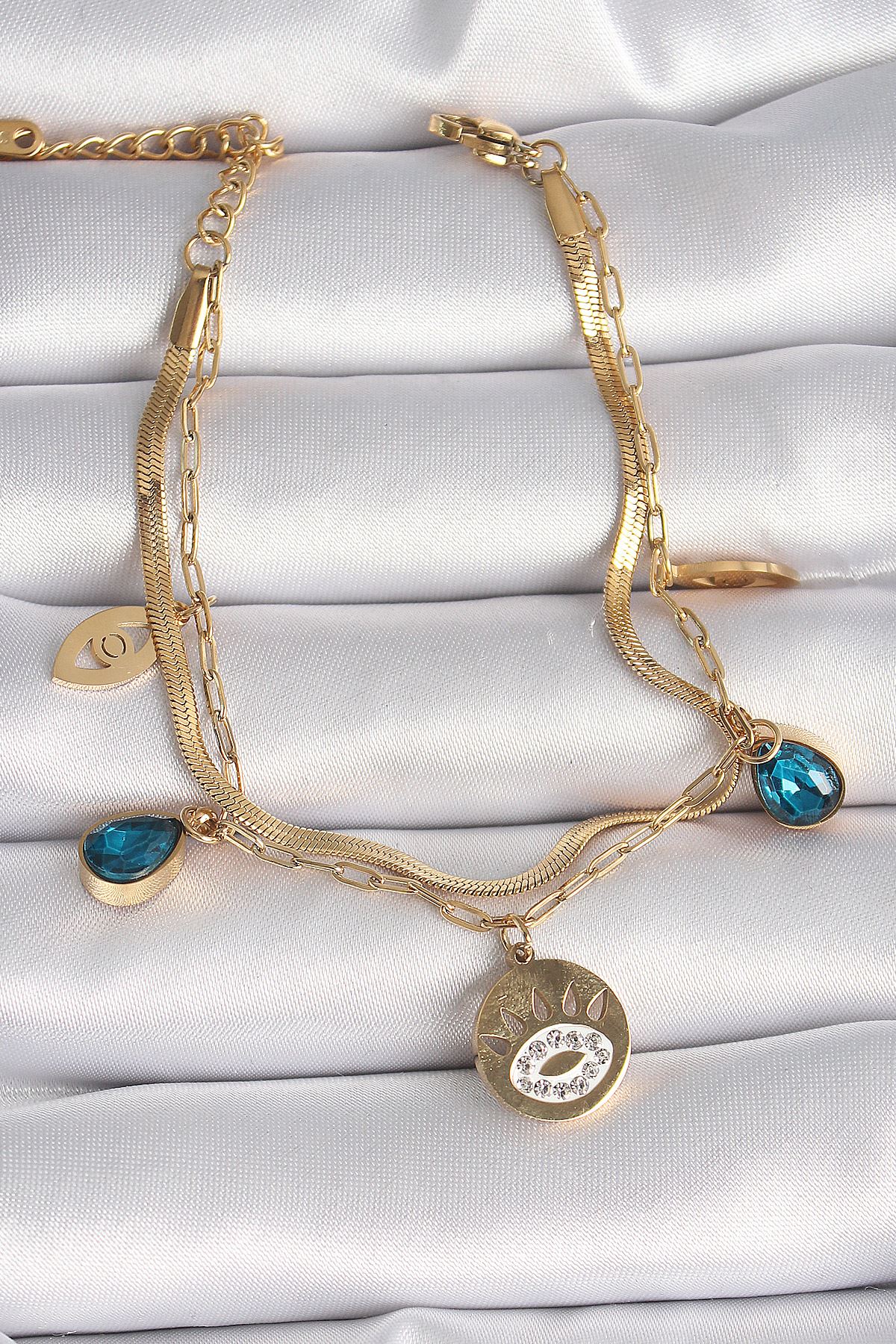 YRTCL 316L Çelik Zincir Kristal Boncuklu Göz Model Kadın Kolye