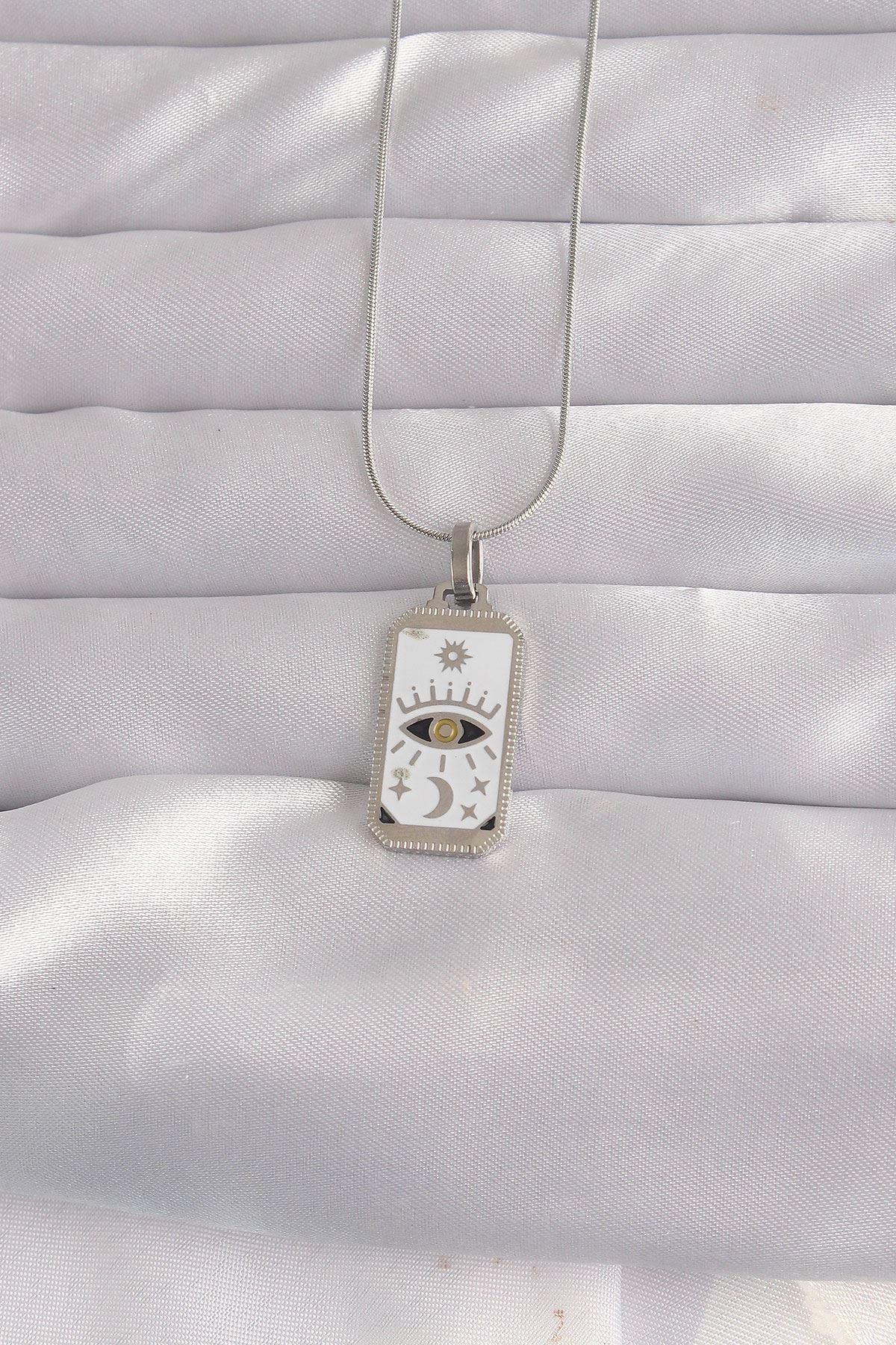 YRTCL 316L Çelik Gümüş Renk Beyaz Mineli Göz Figür Tarot Kolye