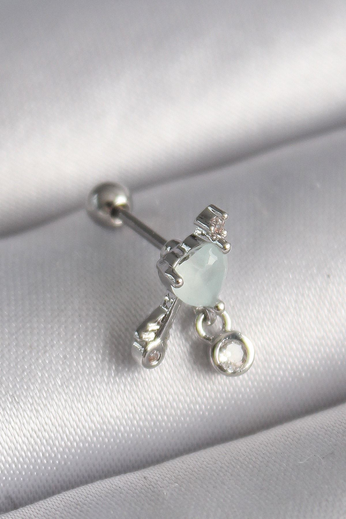YRTCL 316L Çelik Gümüş Renk Beyaz Minelik Kalp Sallantı Zirkon Taş Detay Tragus Piercing