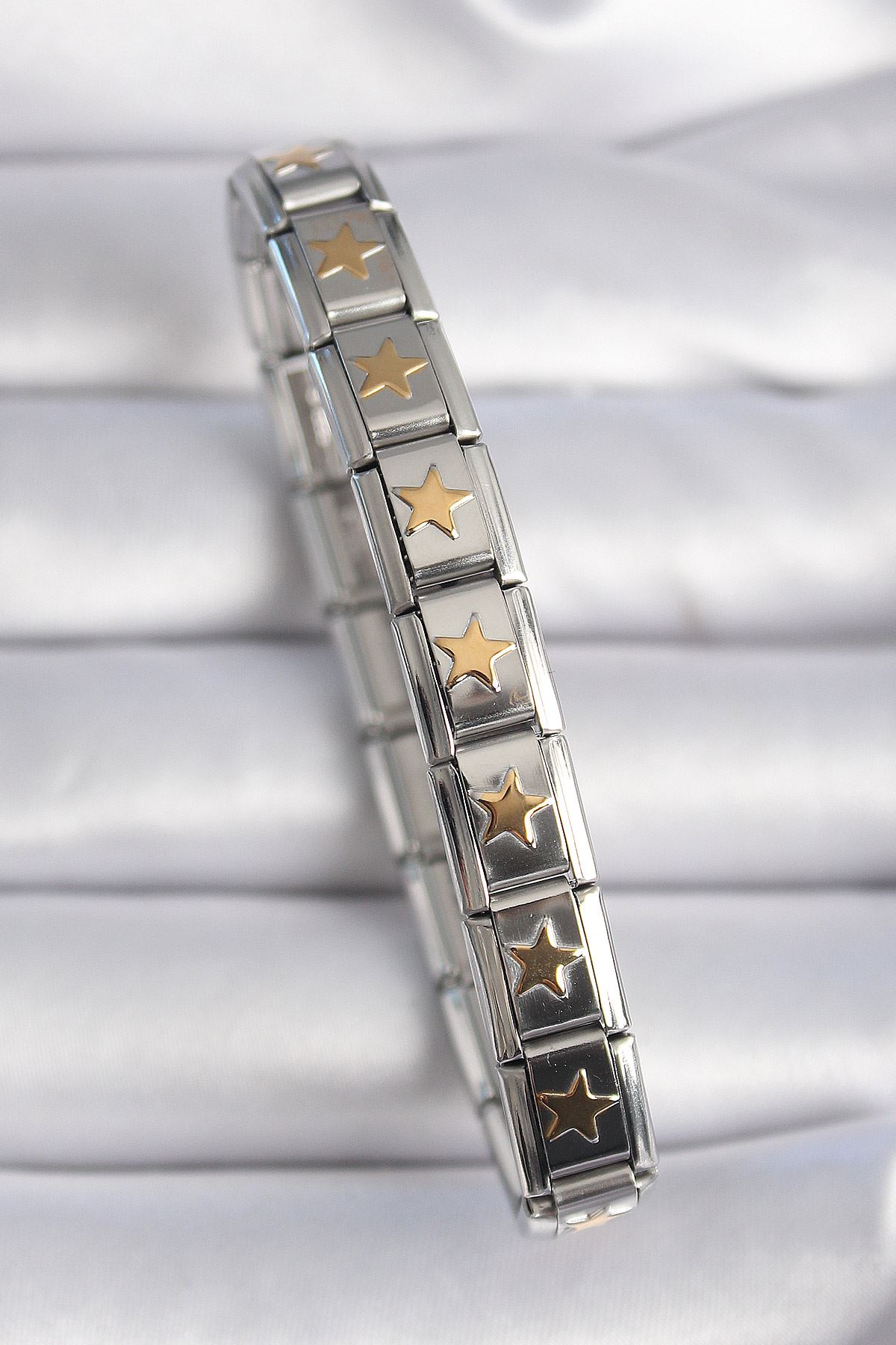 YRTCL 316L Çelik Gümüş Renk Gold Yıldız İşleme Nomination Charm Bileklik