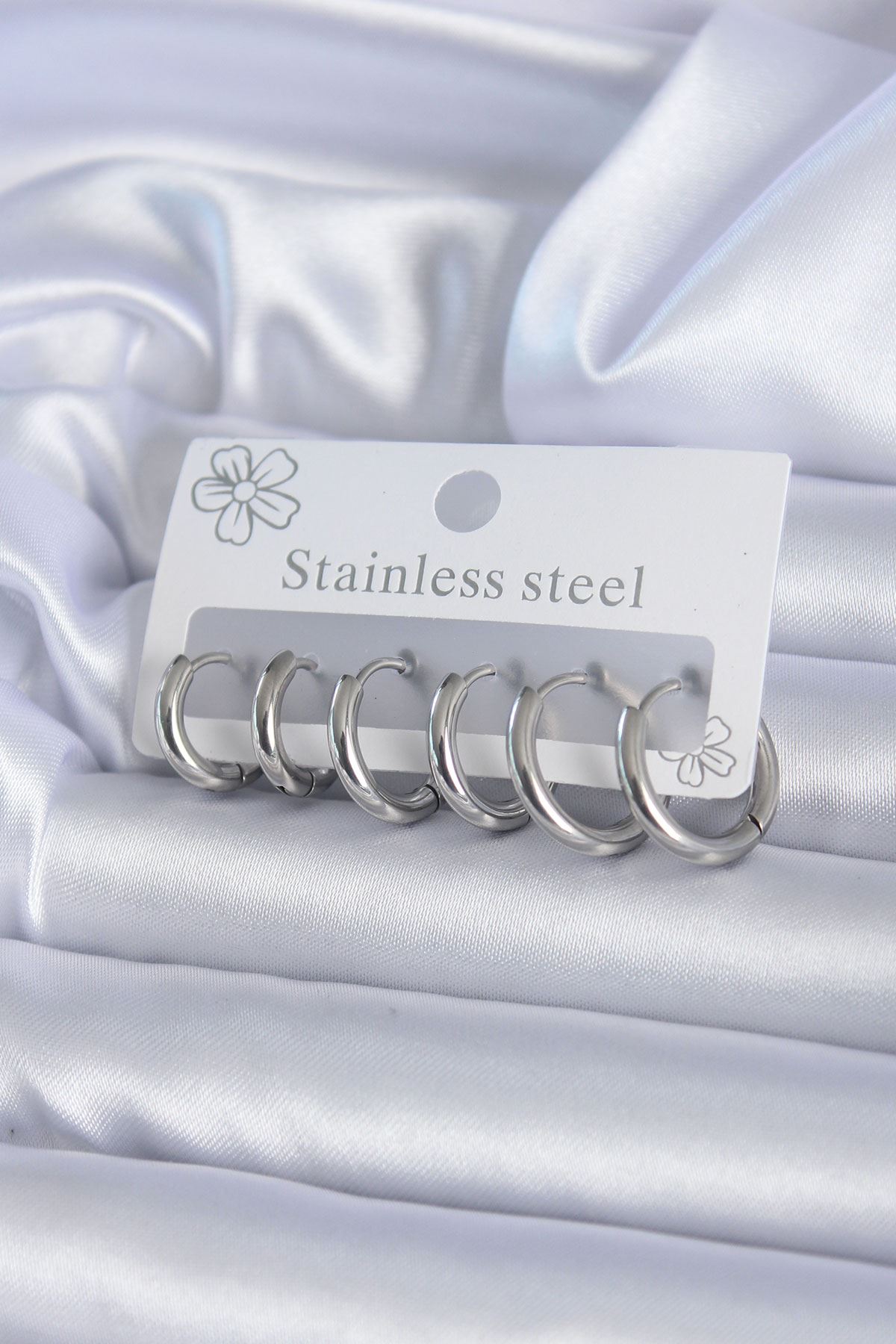 YRTCL 316L Çelik Gümüş Renk Halka Kadın Küpe Seti