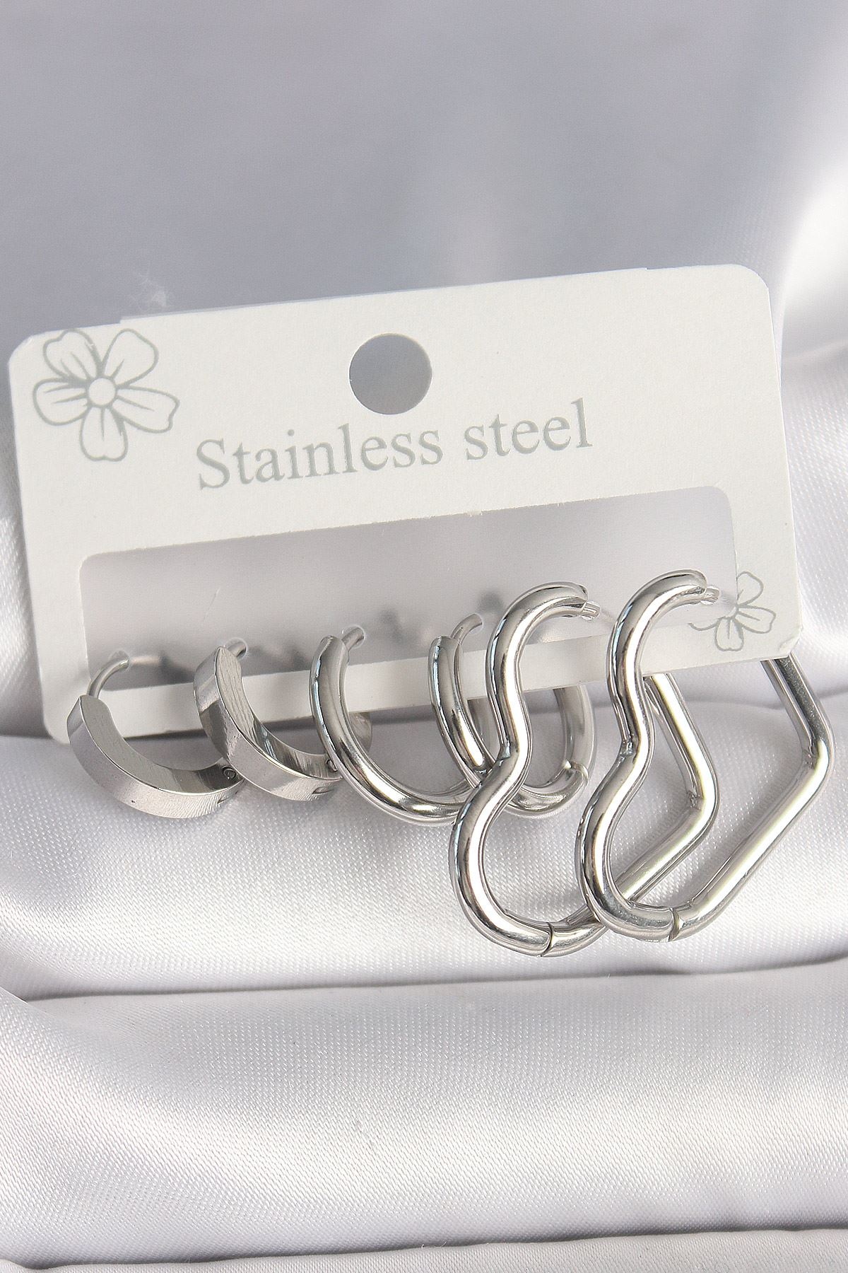 YRTCL 316L Çelik Gümüş Renk Halka Kalp Model Kadın Küpe Seti