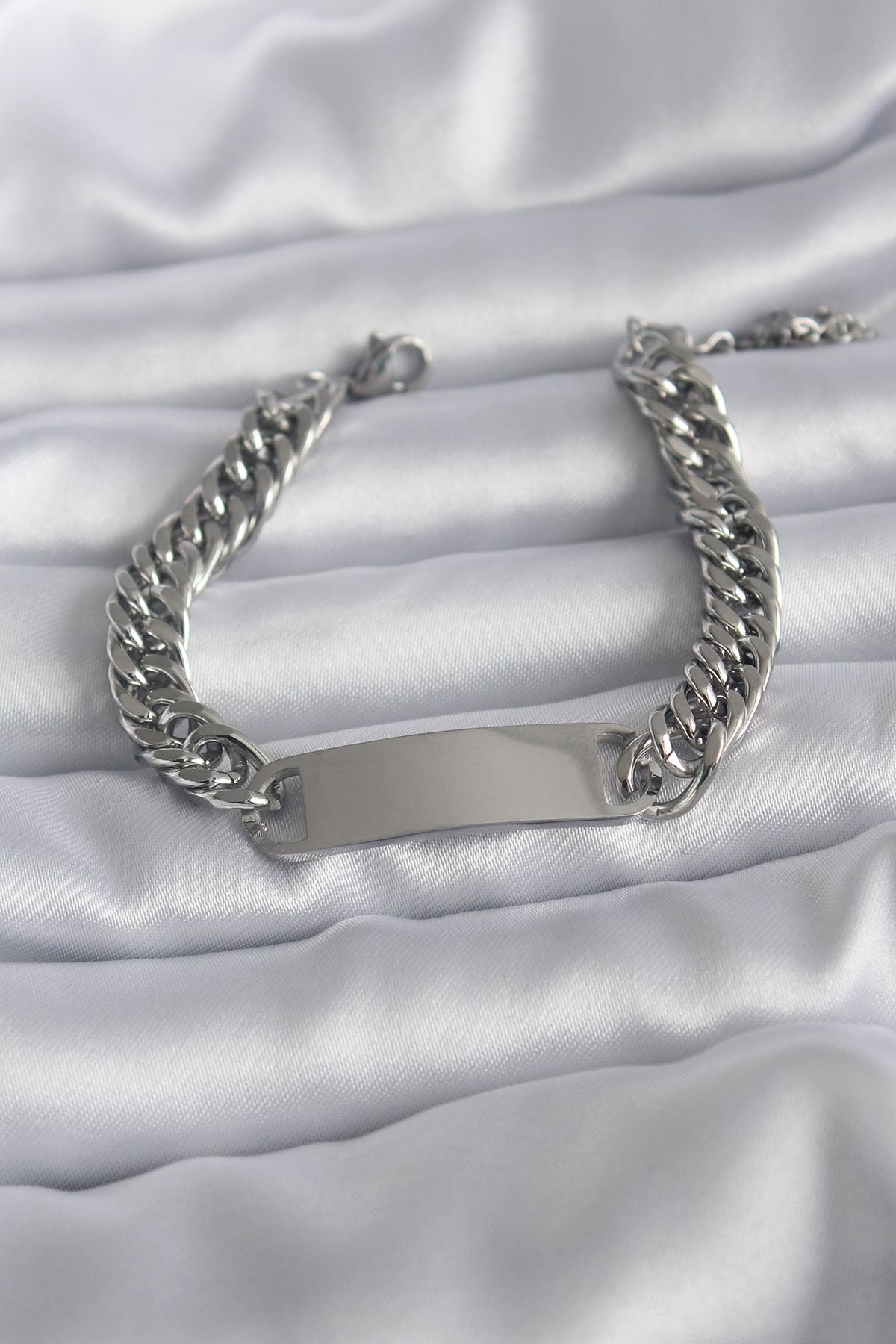 YRTCL 316L Çelik Gümüş Renk İsim Yazılabilir Plaka Model Kadın Bileklik