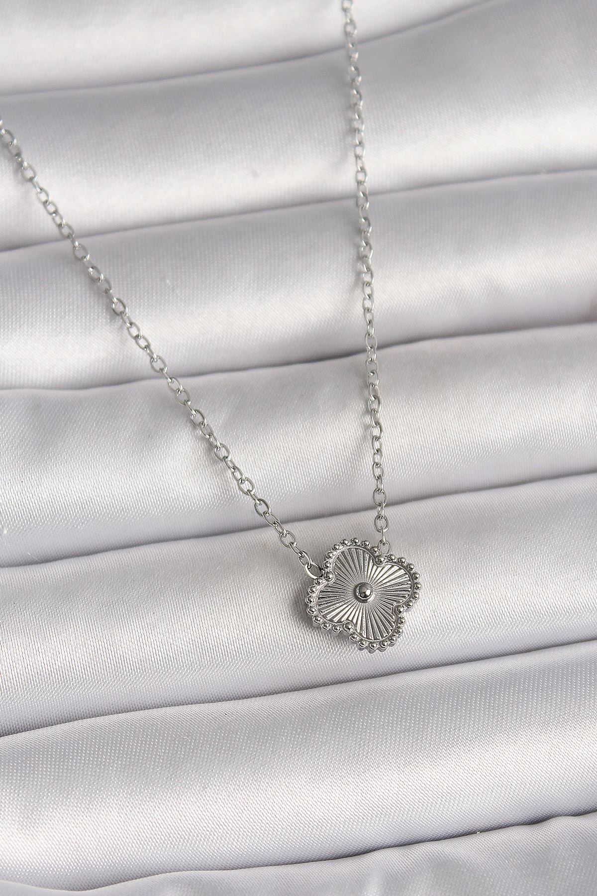 YRTCL 316L Çelik Gümüş Renk İşleme Detaylı Yonca Model Kadın Kolye