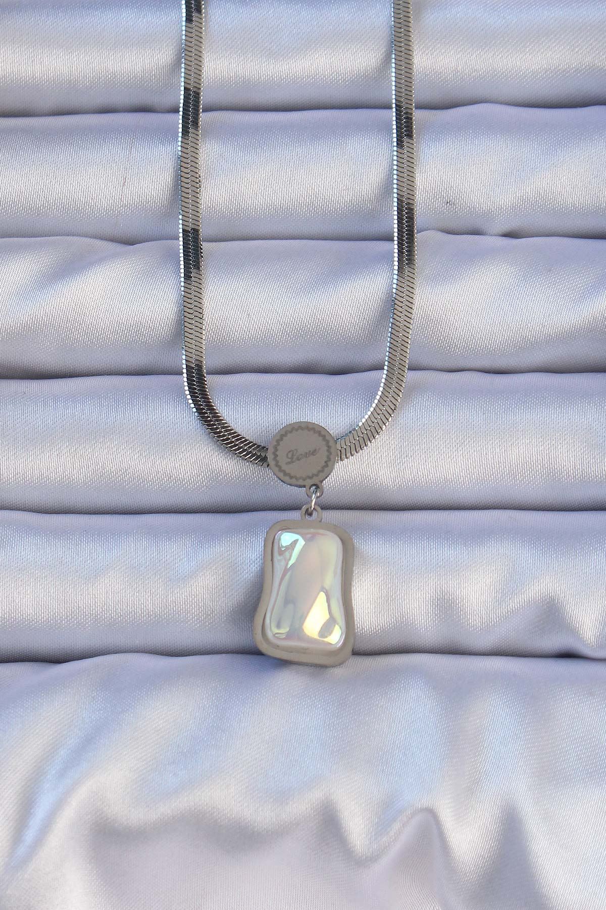 YRTCL 316L Çelik Gümüş Renk İtalyan Zincir Ezme Taşlı Kolye