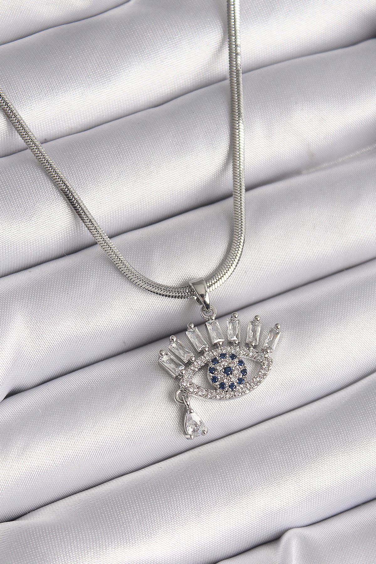 YRTCL 316L Çelik Gümüş Renk İtalyan Zincir Zirkon Taşlı Göz Model Kadın Kolye