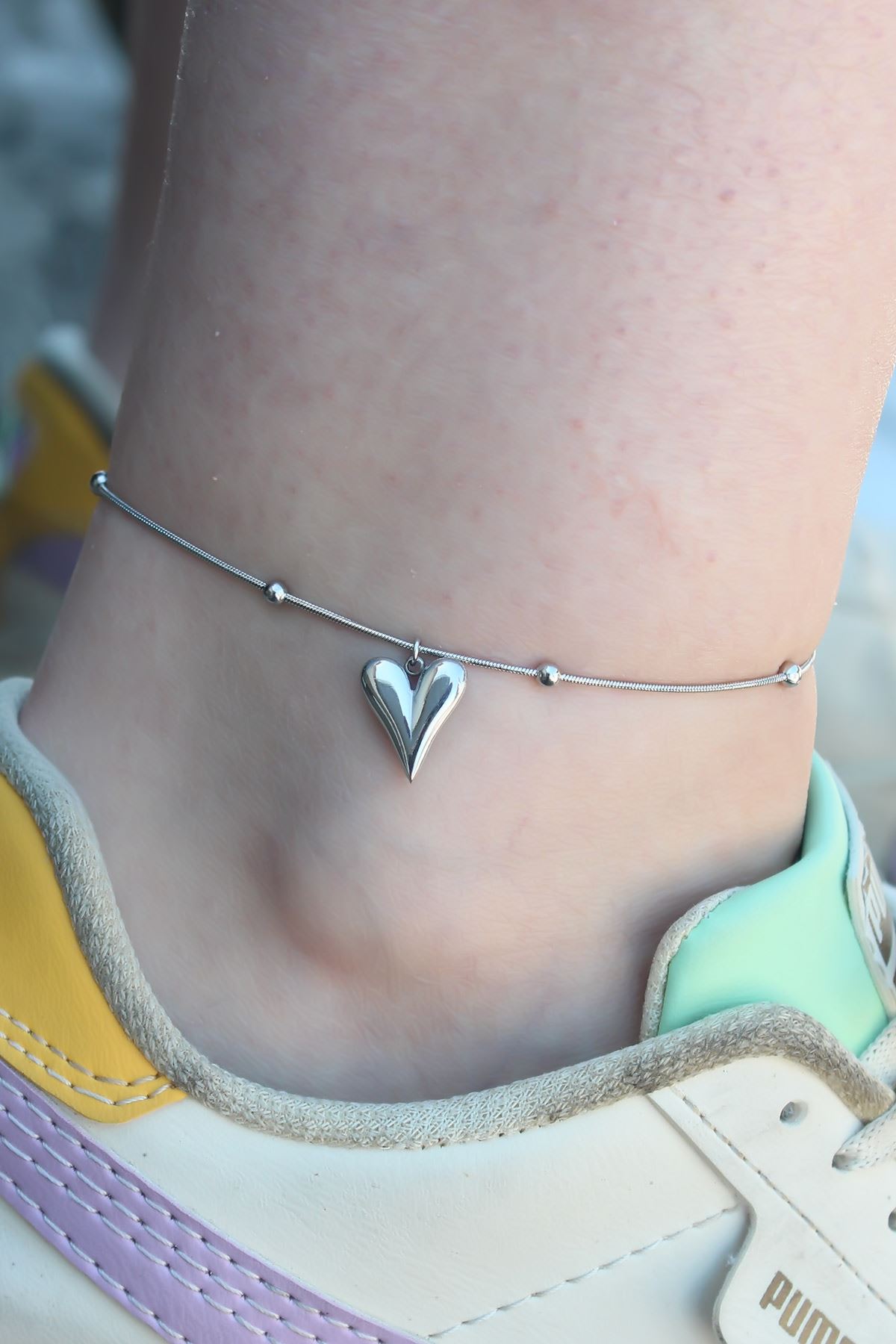 YRTCL 316L Çelik Gümüş Renk Kalp Figür Kadın Halhal