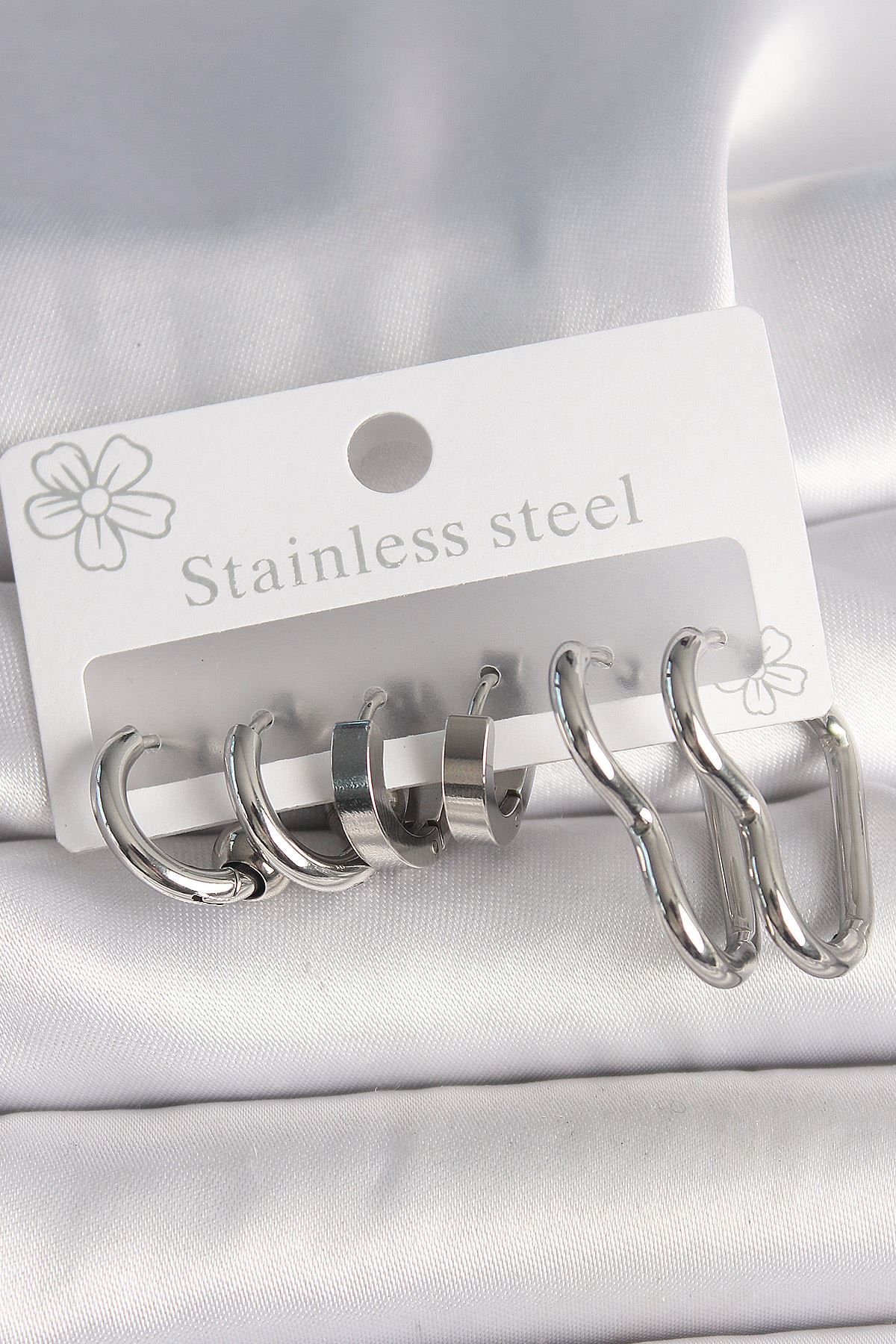 YRTCL 316L Çelik Gümüş Renk Kalp Halka Model Kadın Küpe Seti