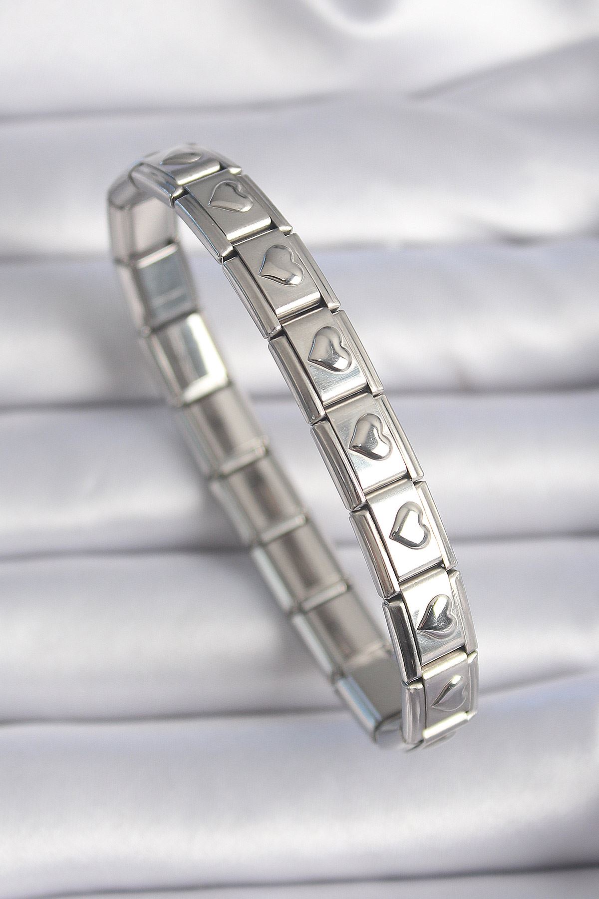 YRTCL 316L Çelik Gümüş Renk Kalp İşleme Nomination Charm Bileklik