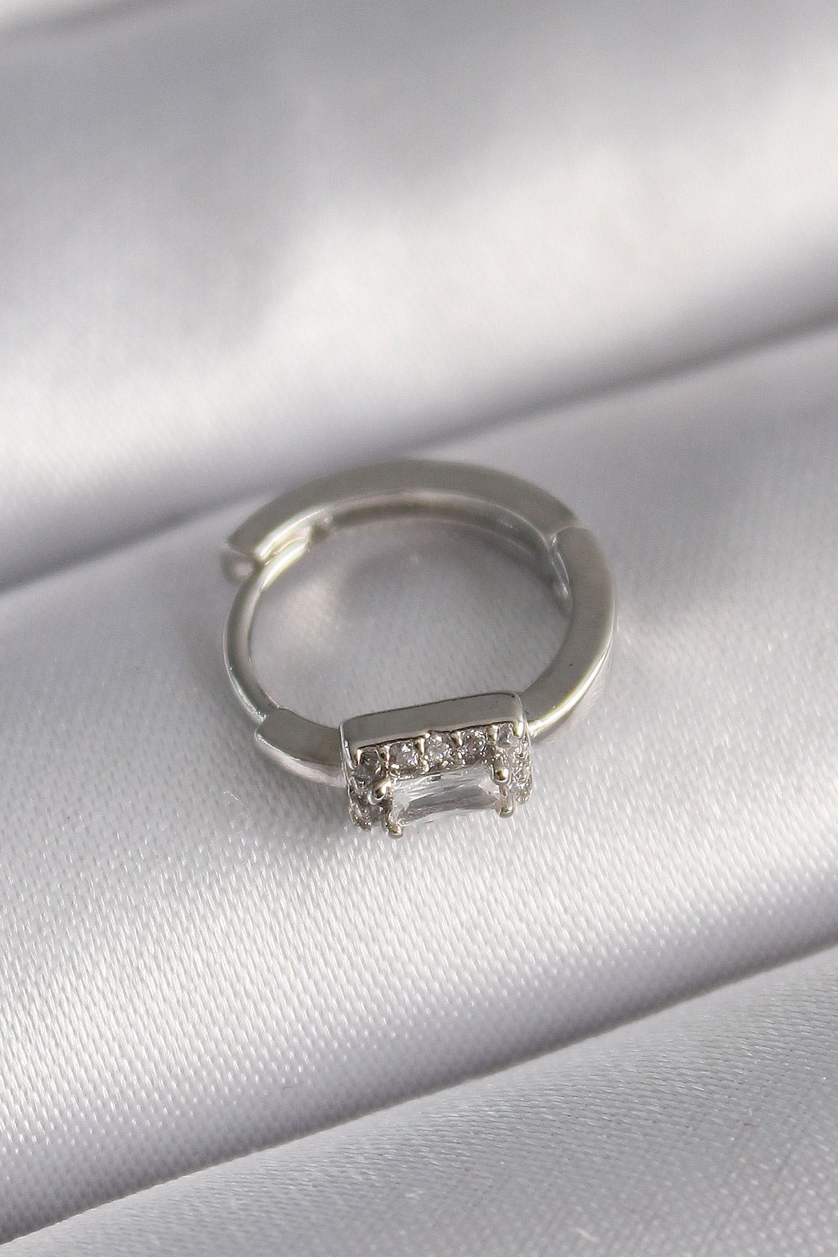 YRTCL Pirinç Gümüş Renk Zirkon Taşlı Geometrik Model Küpe
