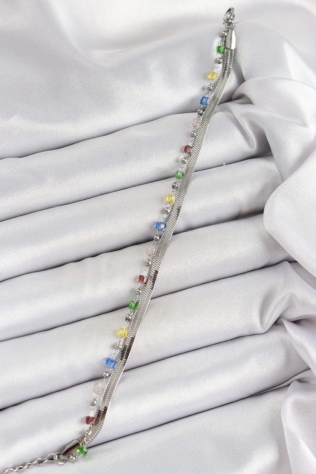 YRTCL 316L Çelik Gümüş Renk Karışık Renkli Kristal Taşlı Kadın Bileklik