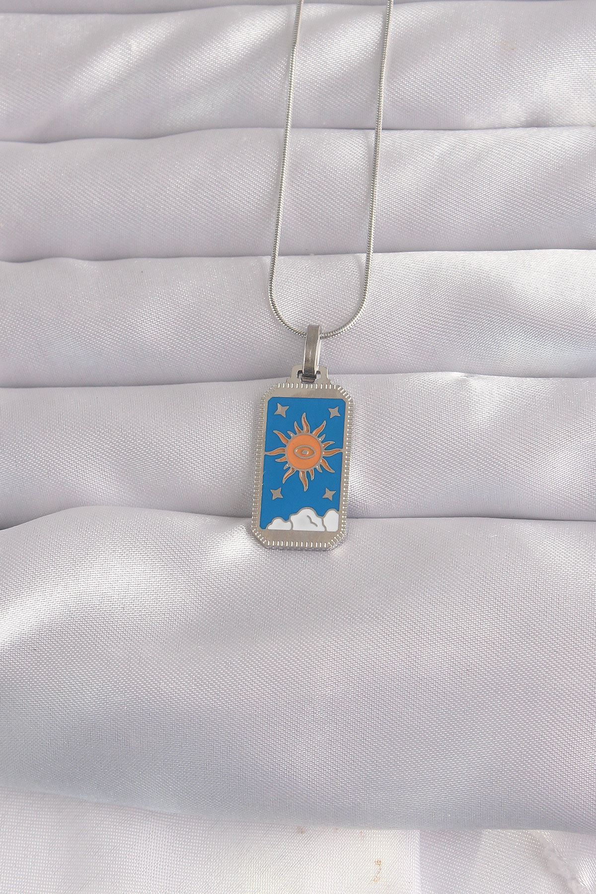 YRTCL 316L Çelik Gümüş Renk Mavi Mineli Güneş Model Tarot Kolye