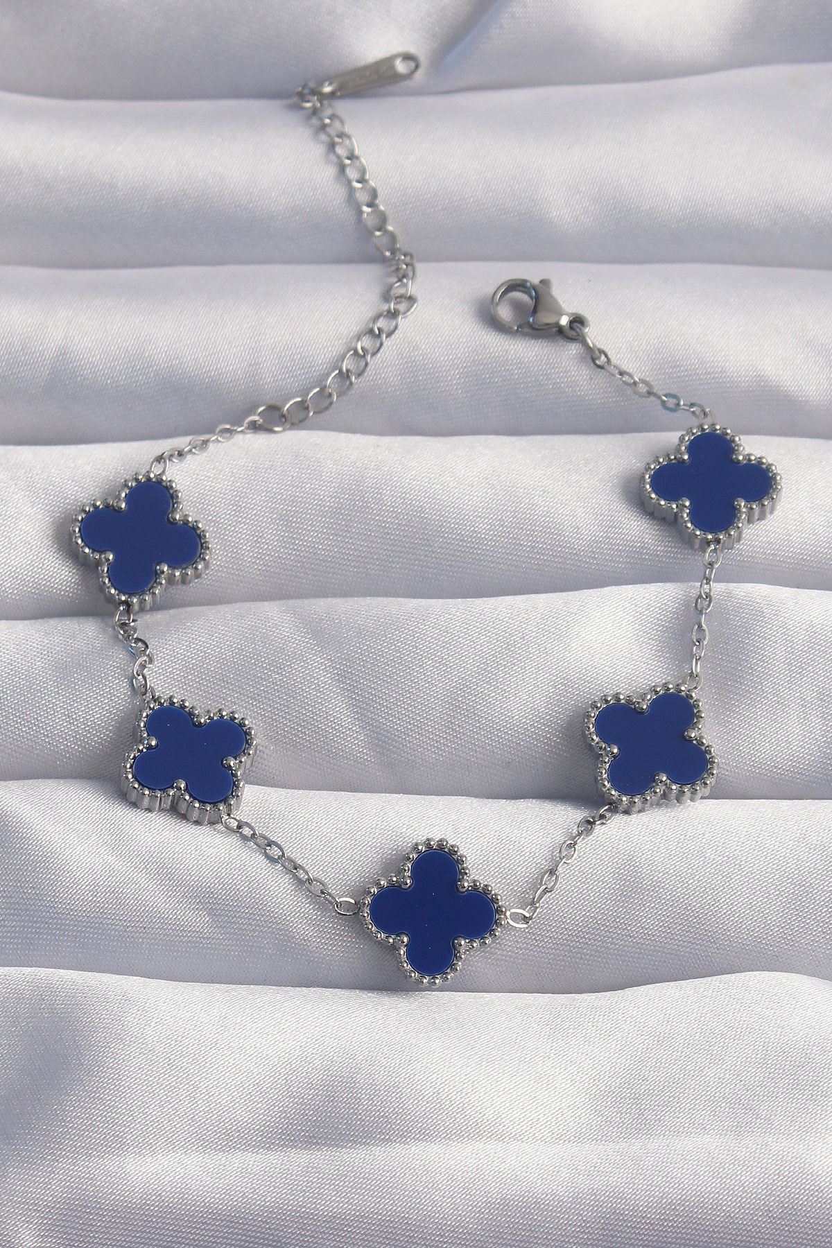 YRTCL 316L Çelik Gümüş Renk Mavi Mineli Yonca Bileklik