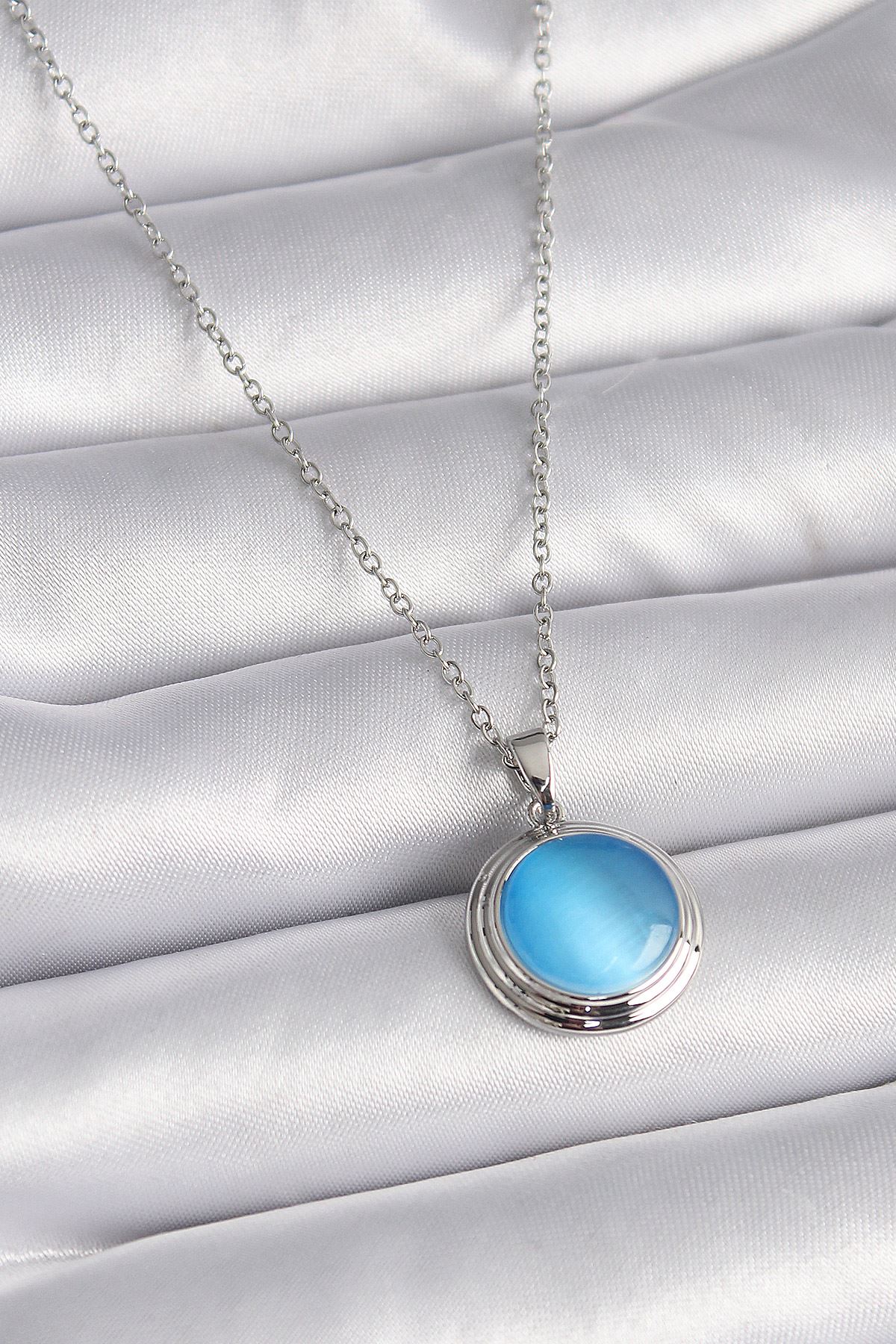 YRTCL 316L Çelik Gümüş Renk Mavi Sedefli Daire Model Kadın Kolye
