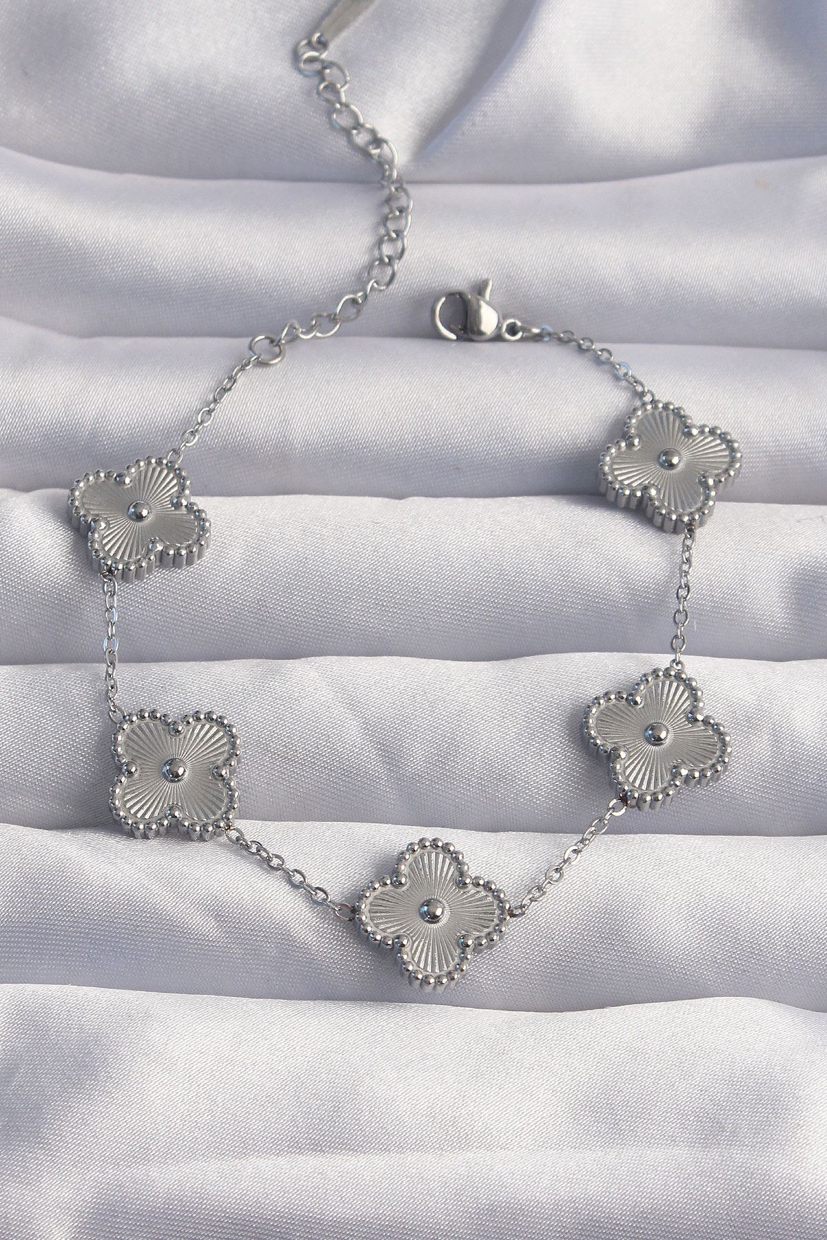 YRTCL 316L Çelik Gümüş Renk Motifli Yonca Bileklik
