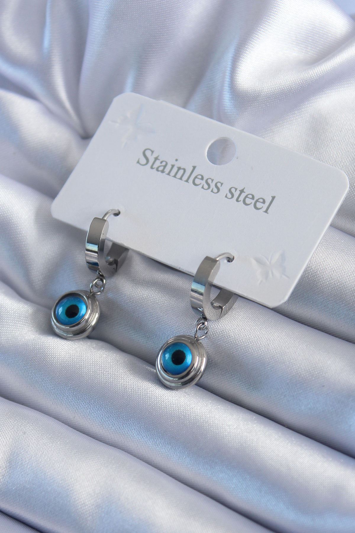 YRTCL 316L Çelik Gümüş Renk Nazar Boncuk Model Kadın Küpe