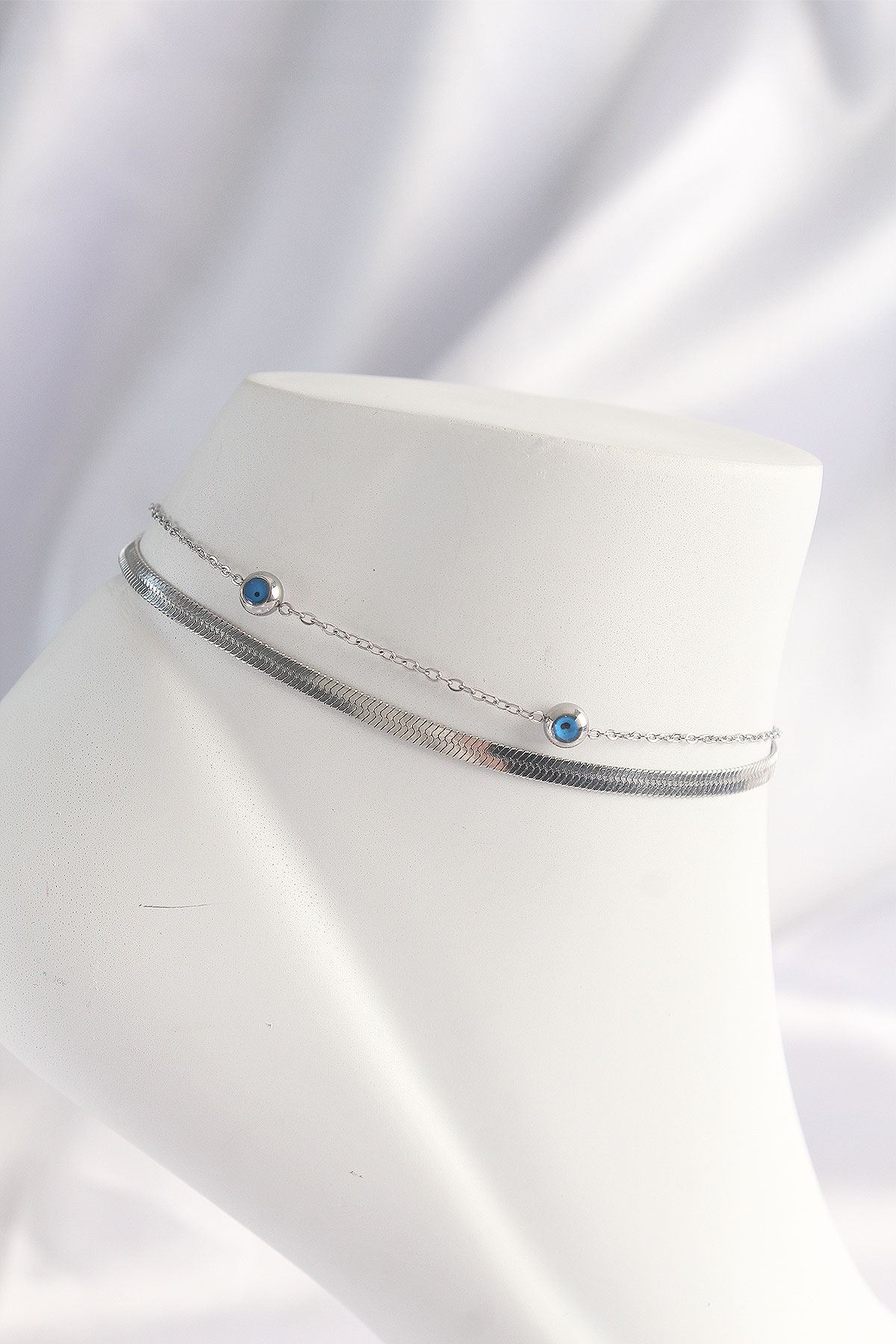 YRTCL 316L Çelik Gümüş Renk Nazar Boncuk Tasarımlı 2li Halhal
